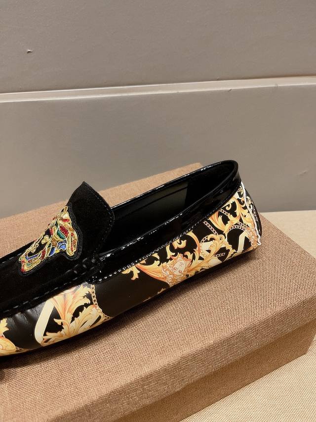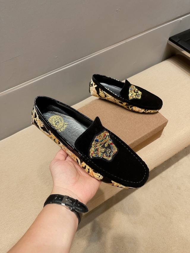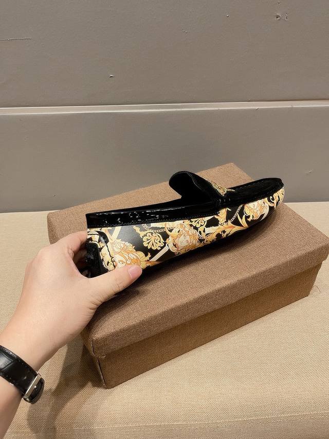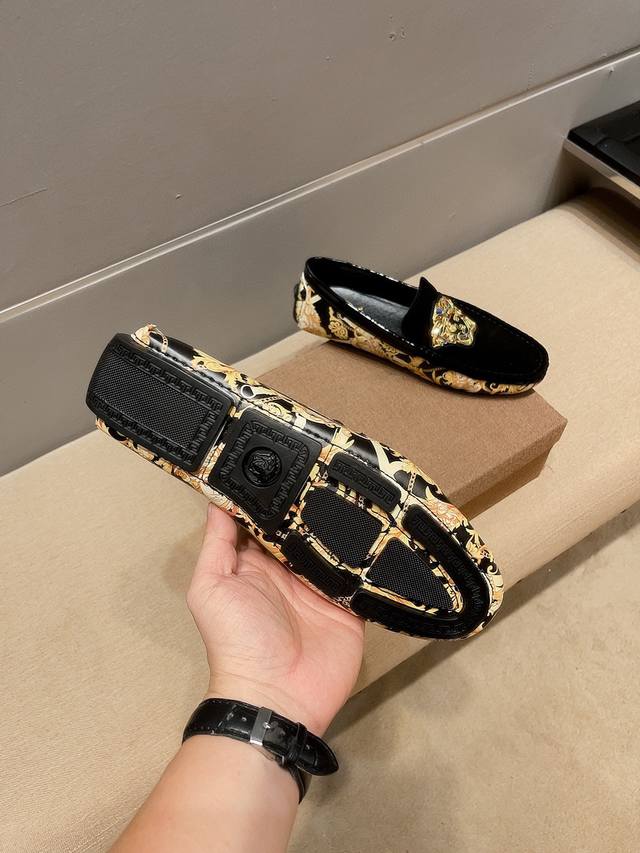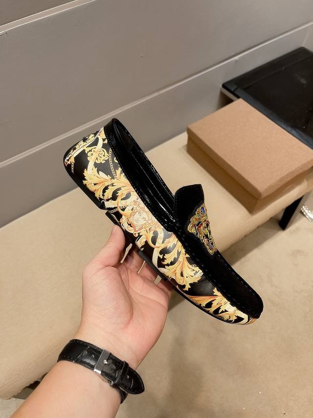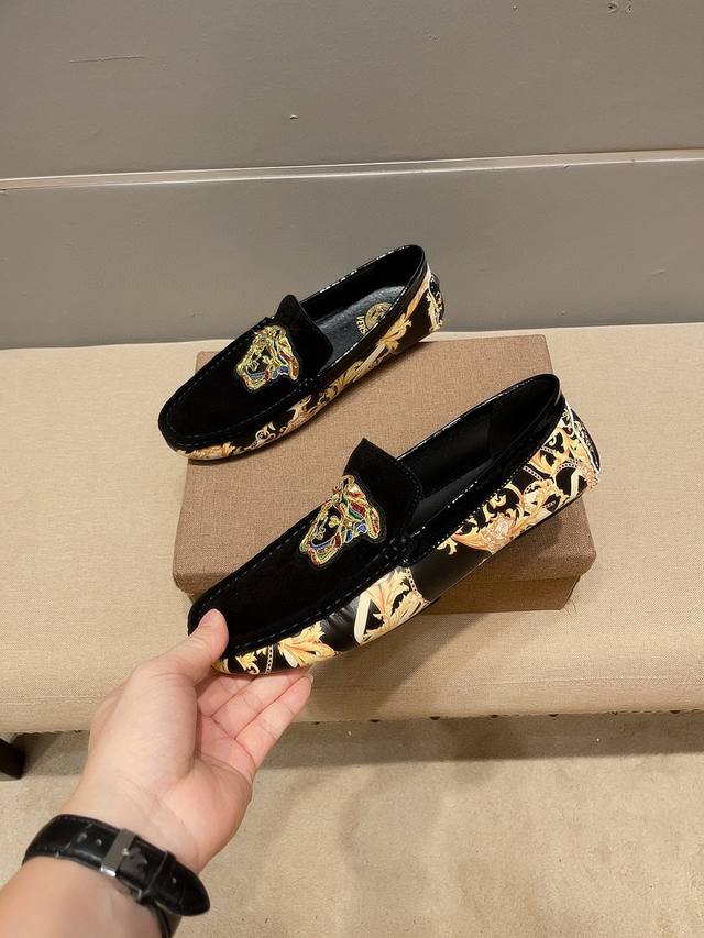 牛皮里真材实料, Verace 范思哲男士四季商务休闲豆豆鞋,最新元素潮爆全球,官网火爆热卖,原版版本,专柜爆款,鞋面意大利进口原版牛皮性感美灶莎头像,男士最爱