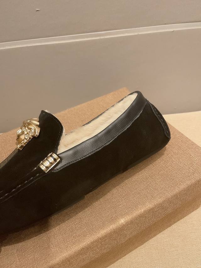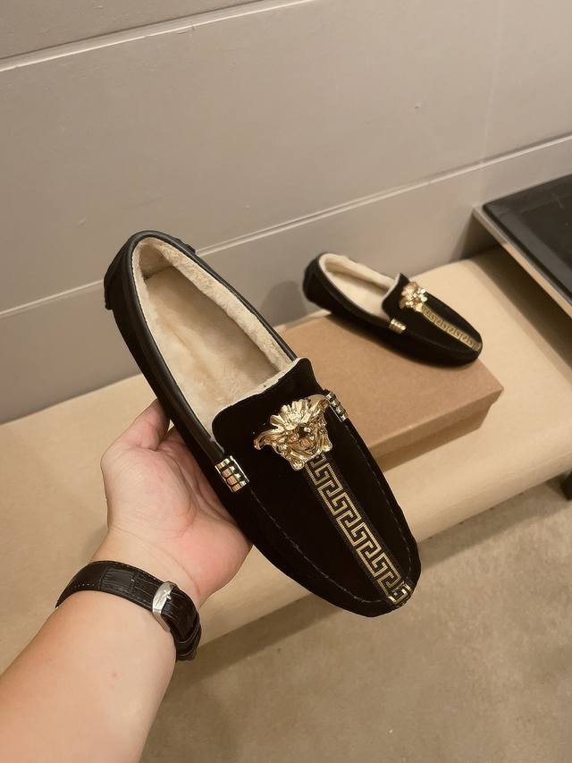 真绵羊毛内里,这个冬季不再冷 范思哲官方首发,新款,意大利冬季男士必备潮流豆豆鞋,官方1:1原版复刻!鞋面进口头层高丝光牛绒牛皮,真绵羊毛内里、原版橡胶大底,防滑耐磨,设计上有独特的美,超级百搭。时尚不失潮流,高档不失品味,绝对的焦点 ,男士的最爱、标准码37-45 DDD