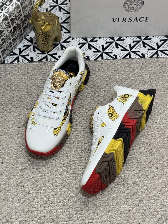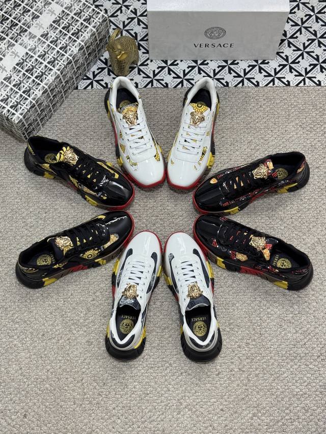 调出厂价P 男装男鞋 运动原单 时尚潮流-范思哲 Versace 范思哲最新款精心打造,引爆全场!不断创新的国际品牌 此款男士四季款休闲鞋,鞋面牛皮拼接橡胶防滑大底,透气舒适以质量说话Size:38-44 45定制