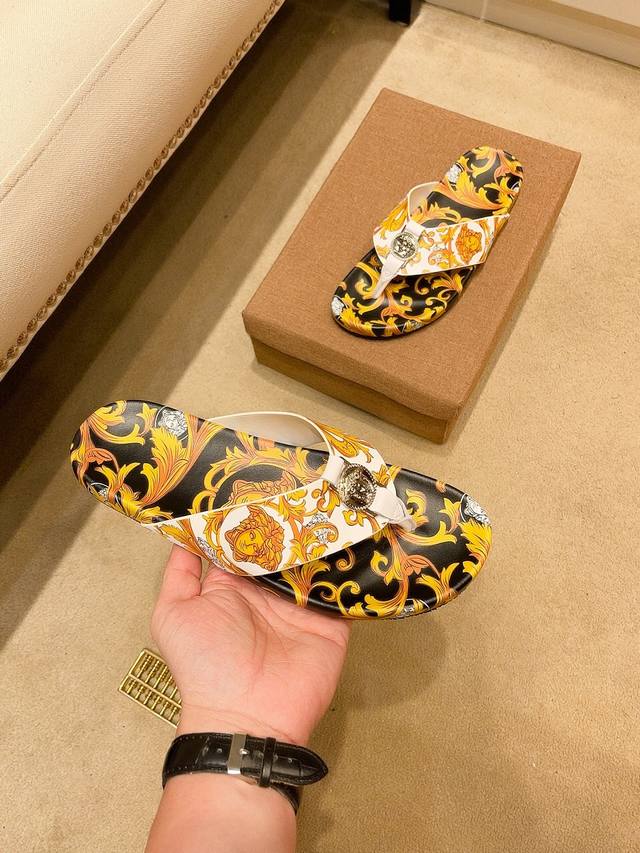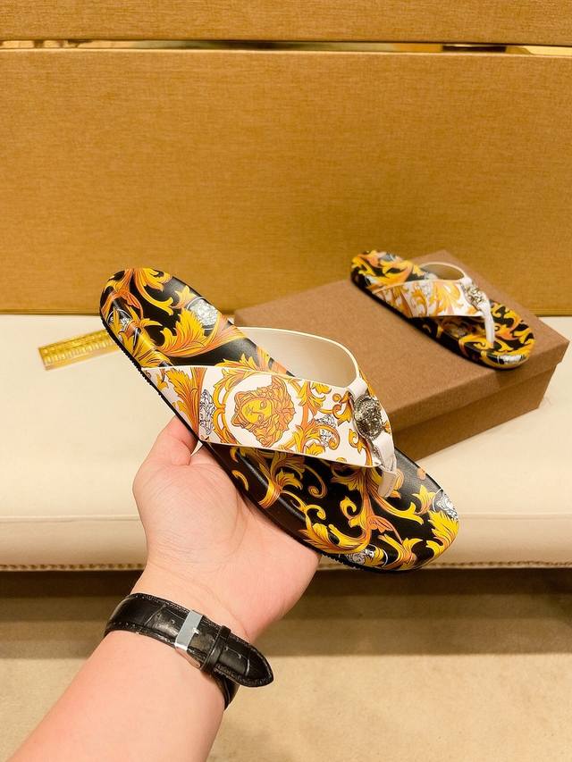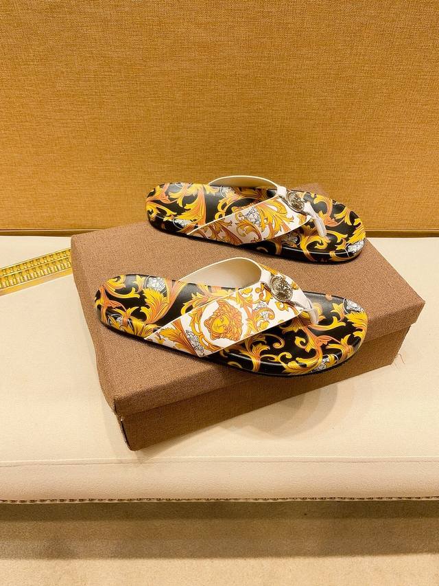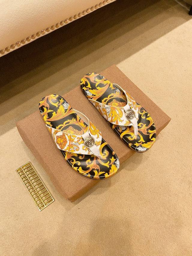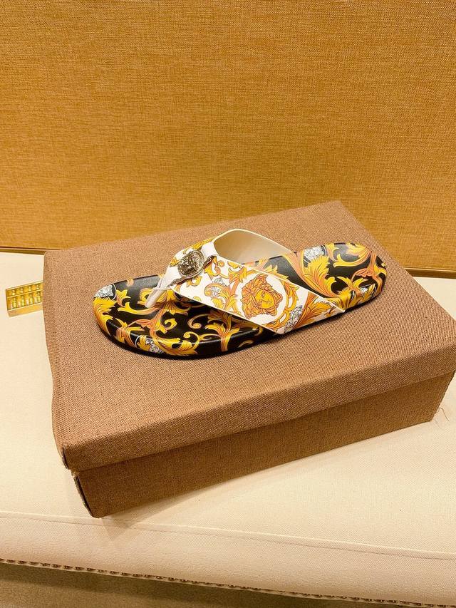 调工厂P价 。 男装男鞋 运动原单范思哲 3D打印牌奢品男士拖鞋,高端精品,原版材质,精细做工,鞋底超软,休闲宽松舒适型,经典老花设计,夏季必入哦!码数38-44