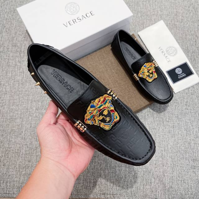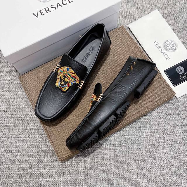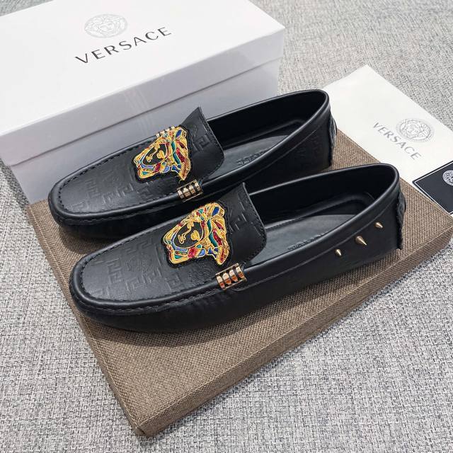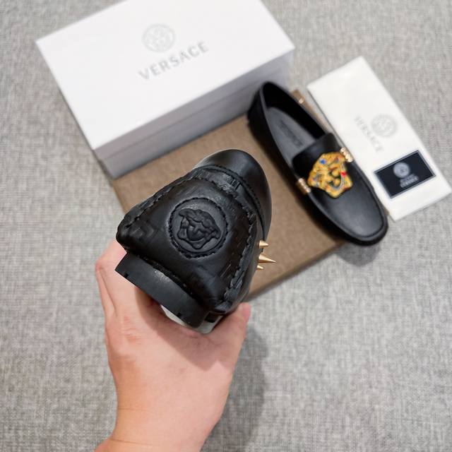 调工厂p价 男装男鞋 运动原单,Versace官网首发意大利男士潮流高端豆豆鞋,官网1:1原版复刻!鞋面进口头层牛皮+三颗金钉时尚奢华,头层吸汗舒适牛里 真材实