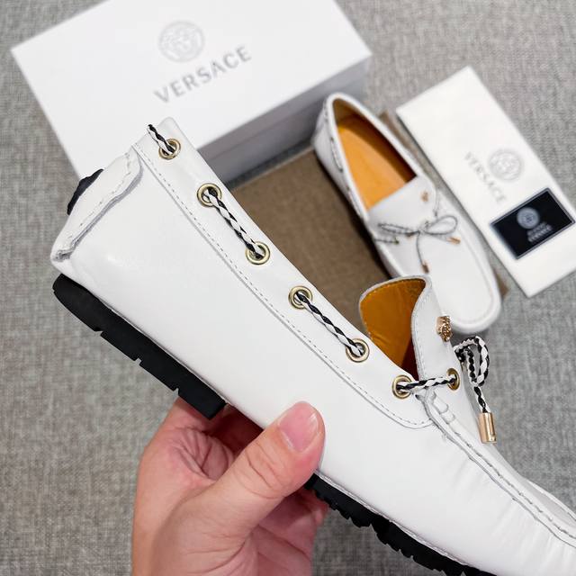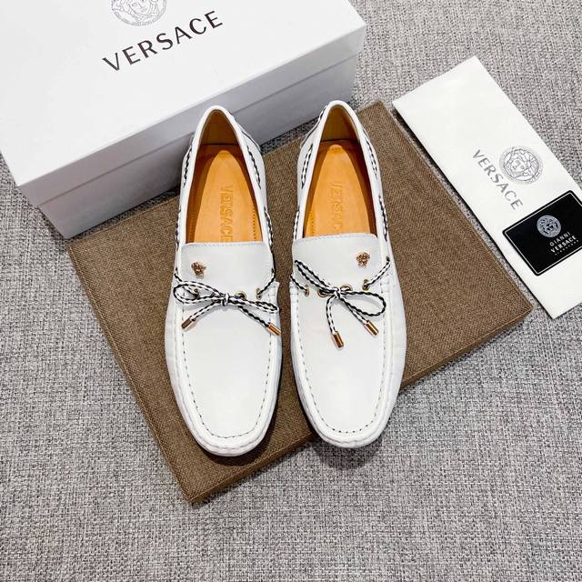 Verace 范思哲官网男士四季休闲商务豆豆鞋,最新元素潮爆全球,官网火爆热卖,原版版本,专柜爆款,鞋面意大利进口原版头层牛皮性感美灶莎头像金属扣,原版防滑大底,舒适透气吸汗牛皮内里垫脚 真材实料 舒适以质量说话,送人双倍面子 标准码37-45