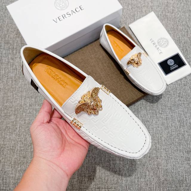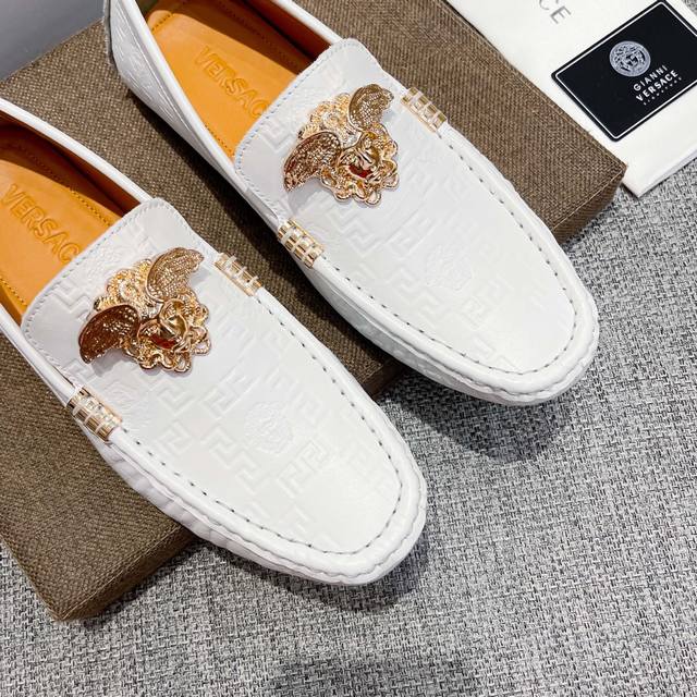 Verace 范思哲官网男士四季休闲商务豆豆鞋,最新元素潮爆全球,官网火爆热卖,原版版本,专柜爆款,鞋面意大利进口原版头层牛皮性感美灶莎头像金属扣,原版防滑大底,舒适透气吸汗牛皮内里垫脚 真材实料 舒适以质量说话,送人双倍面子 标准码37-45