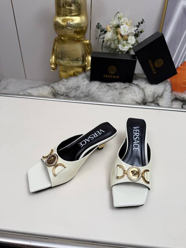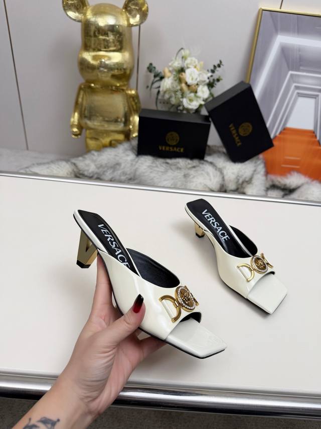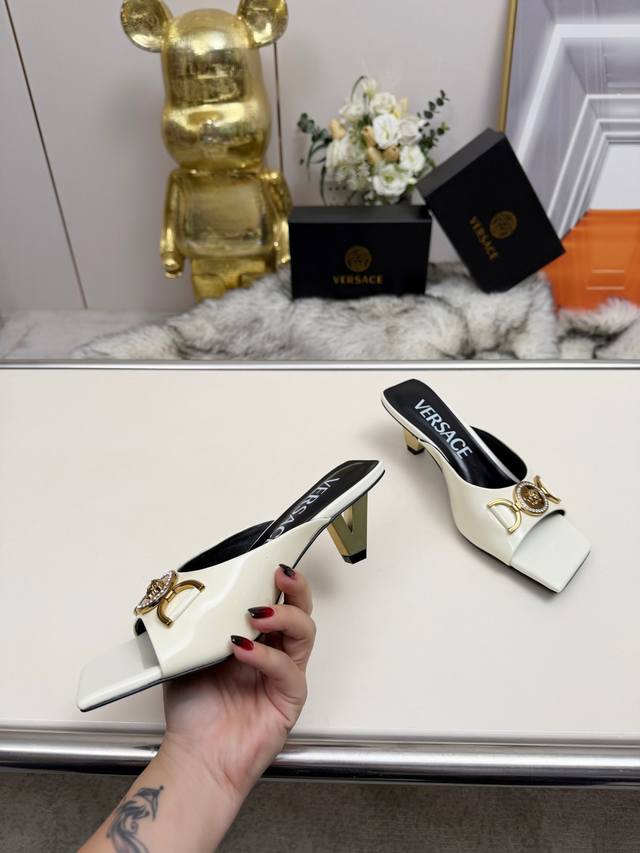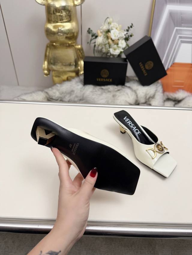 35-42码 范思哲新款穆勒鞋,真丝面料,内里垫脚羊皮,橡胶大底,矮跟6Cm,高跟9Cm,高调时尚,性感奢华。