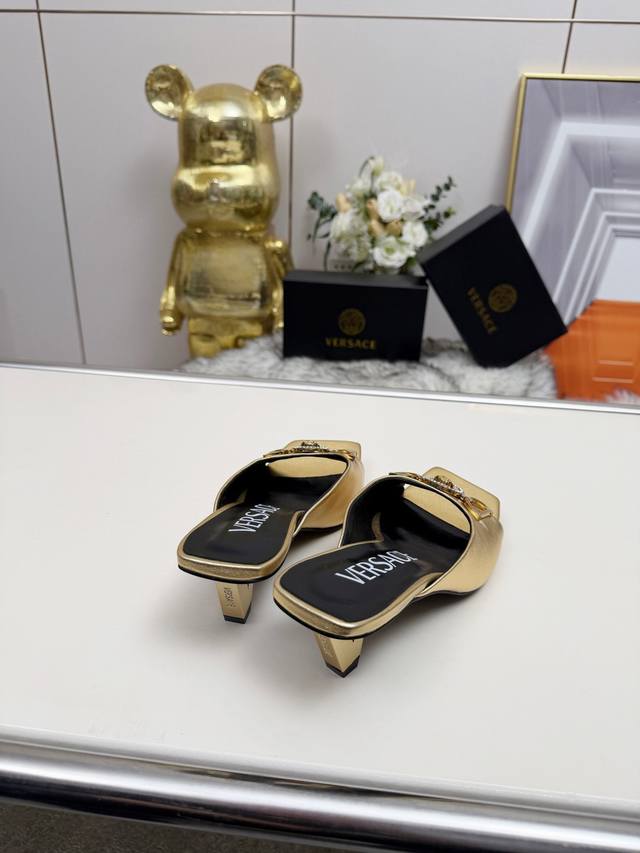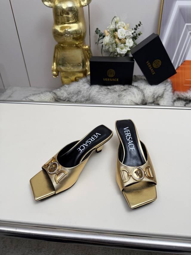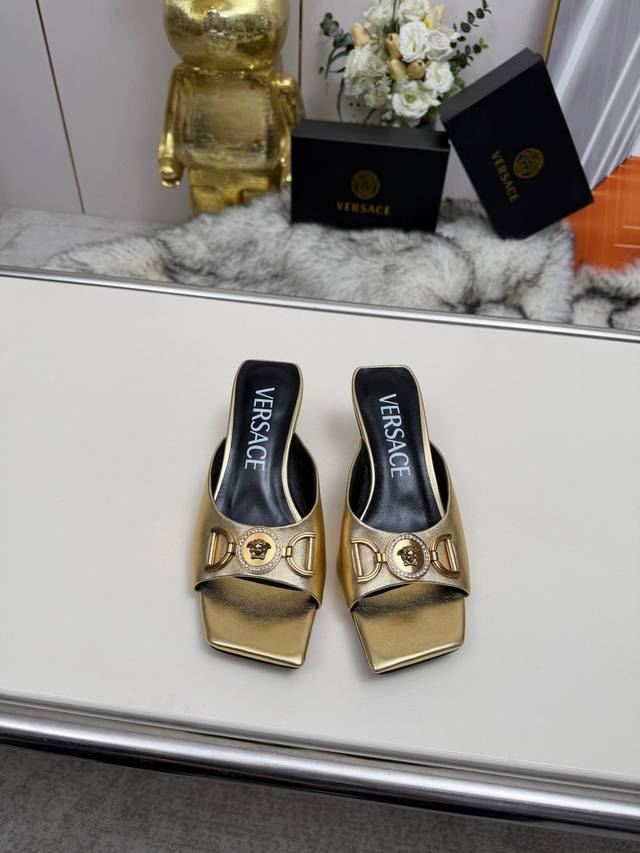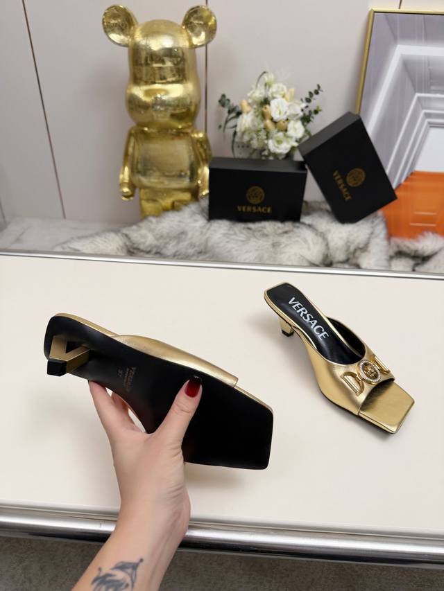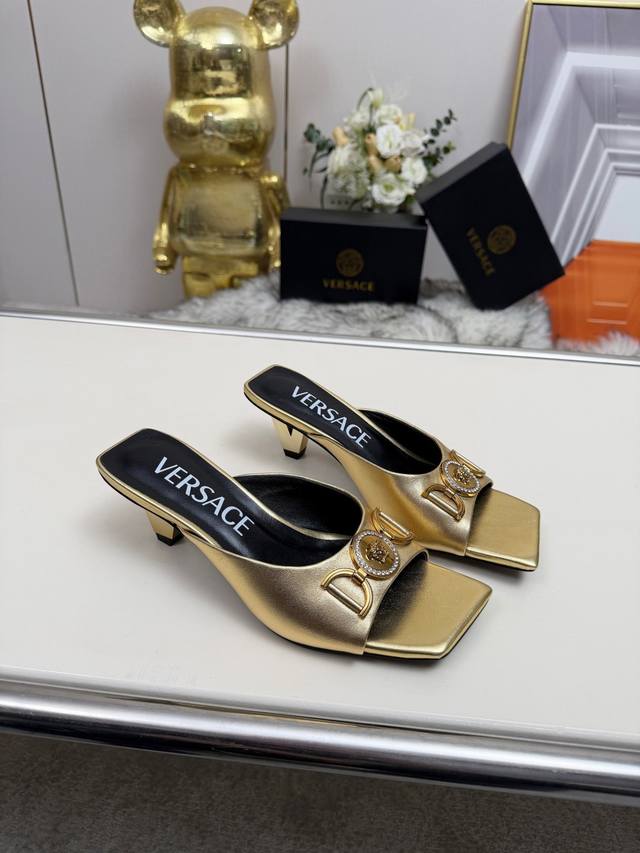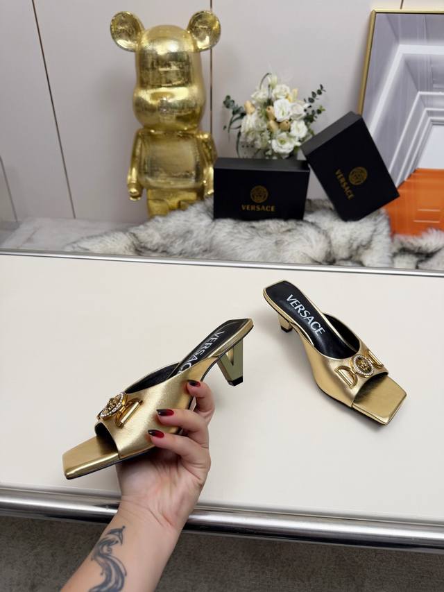 工厂p价 女装女鞋 运动原单 Versace范思哲 Gianni Ribbon 香水瓶水晶粗跟 高跟凉鞋 拖鞋 _______________________