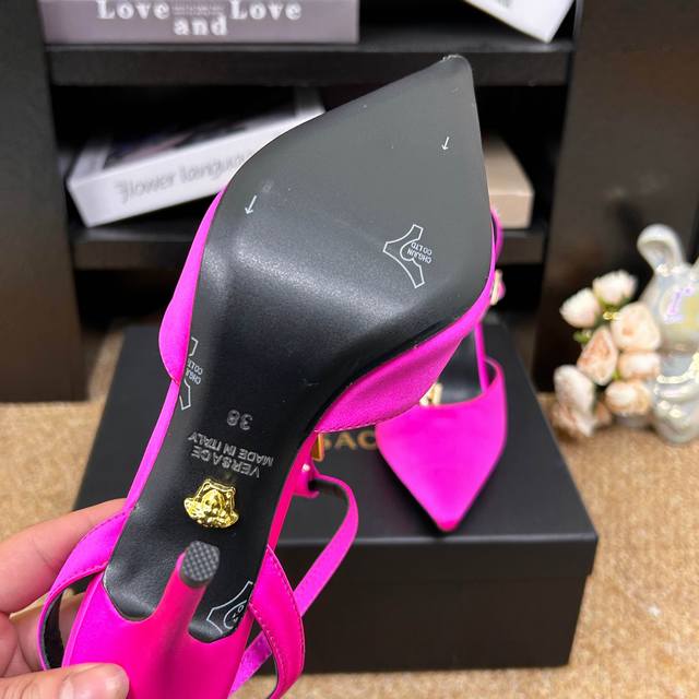 FFF Versace范思哲 6 Gianni Ribbon 美杜莎V扣中空凉鞋 正面饰V型链接扣镶钻 DDD _______________________ DDD 海外热销冠军 DDD Yb一致原鞋开发楦型 各大时尚博主及明星、网红、已经人手一对,如此出众的美,让人过目不忘! DDD DDD Go 材质: DDD 鞋面:真丝布 DDD 内里垫脚:进口优质山羊皮 DDD 跟高:10.5Cm DDD 鞋底:意大利Italy牛皮大底 DDD 码数:- 42定制不退换 DDD 包装:全套原版包装 DDD 等级