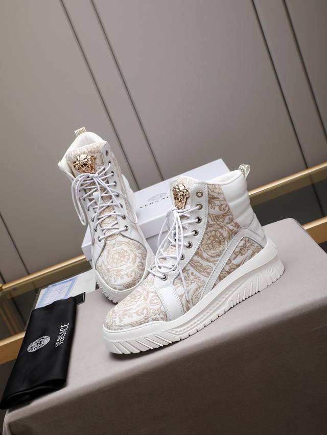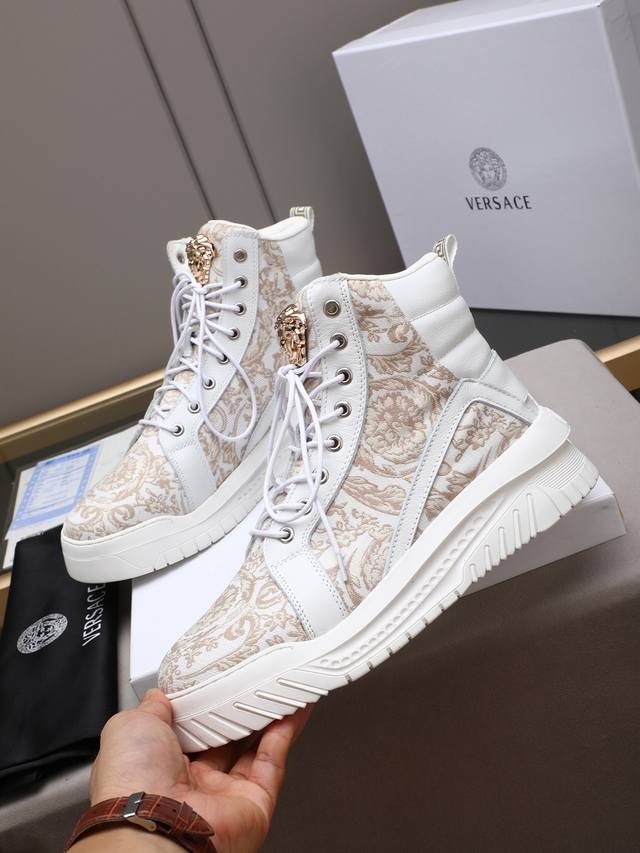 Versace 范思哲时尚男鞋奢华品质,设计师在每一期都专业打造出范思哲每一款休闲鞋靴风格不一。鞋面采用意大利进口牛皮拼接,舒适网里毛里上脚舒适。给你高调奢华的舒适体验 码数:38-44 45定做 多色可选