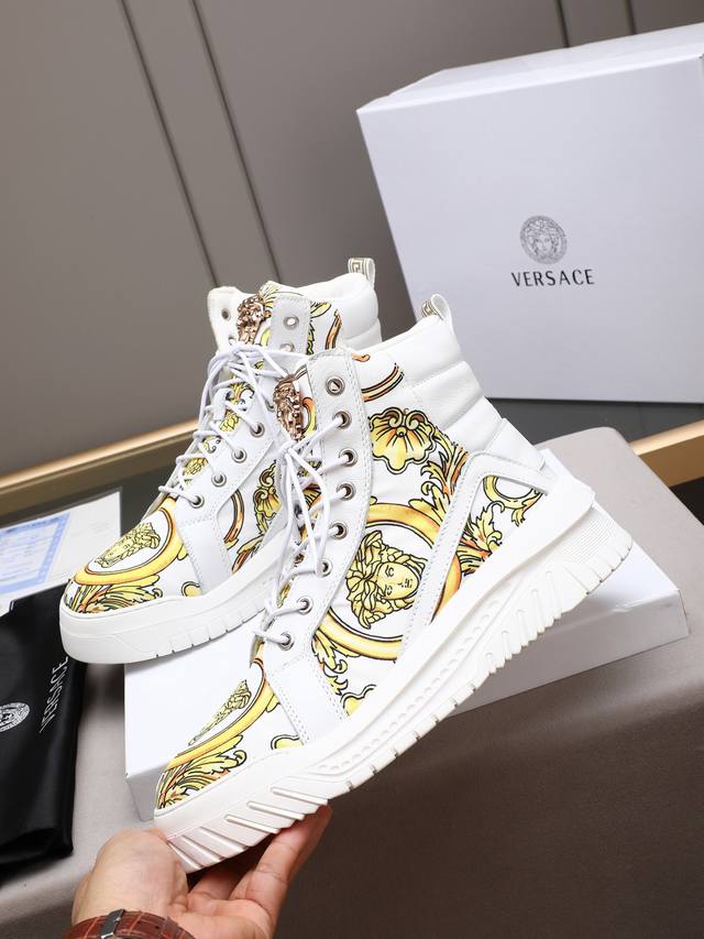 Versace 范思哲时尚男鞋奢华品质,设计师在每一期都专业打造出范思哲每一款休闲鞋靴风格不一。鞋面采用意大利进口牛皮拼接,舒适网里,毛里上脚舒适。给你高调奢华的舒适体验 码数:38-44 45定做 多色可选