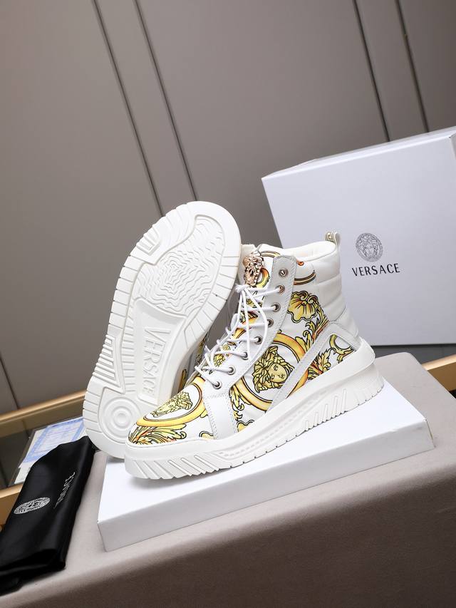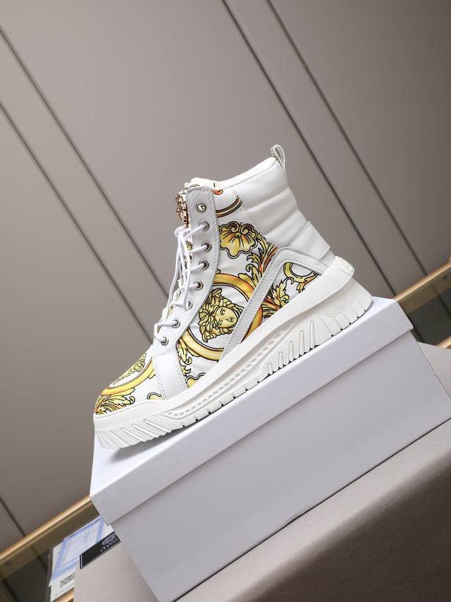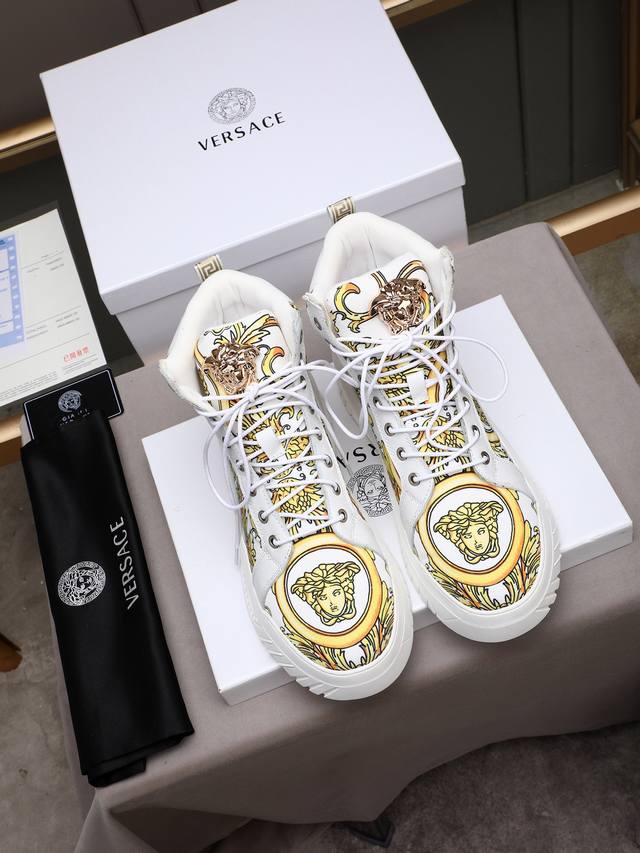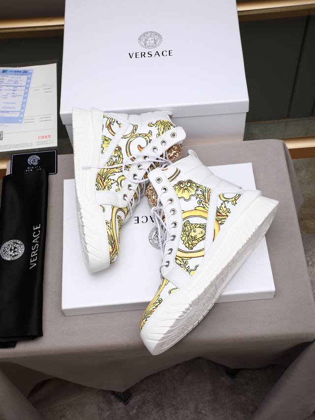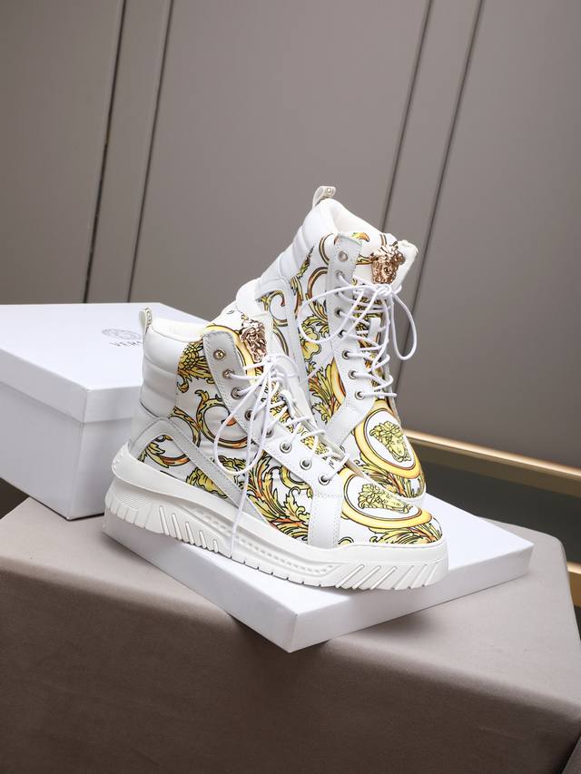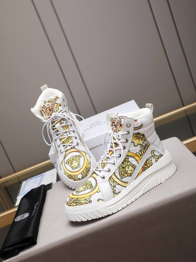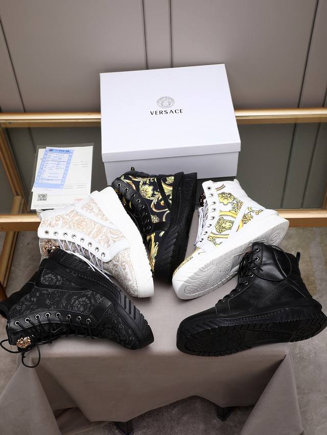 / Versace 范思哲时尚男鞋奢华品质,设计师在每一期都专业打造出范思哲每一款休闲鞋靴风格不一。鞋面采用意大利进口牛皮拼接,舒适网里,毛里上脚舒适。给你高调奢华