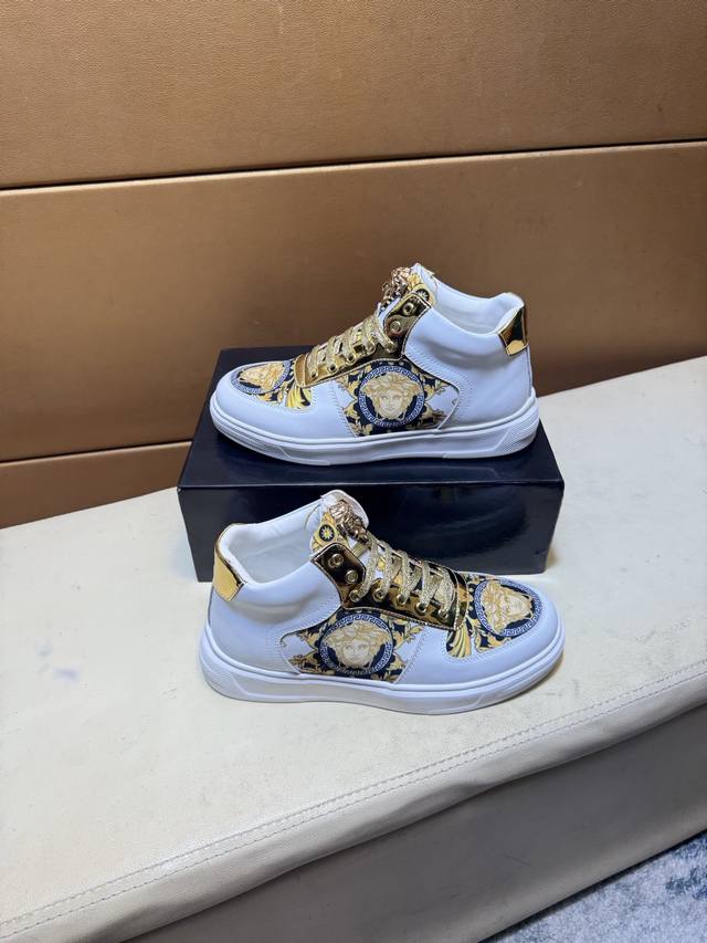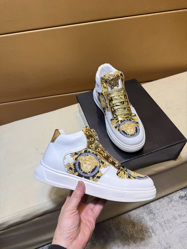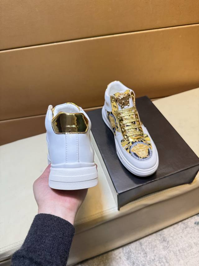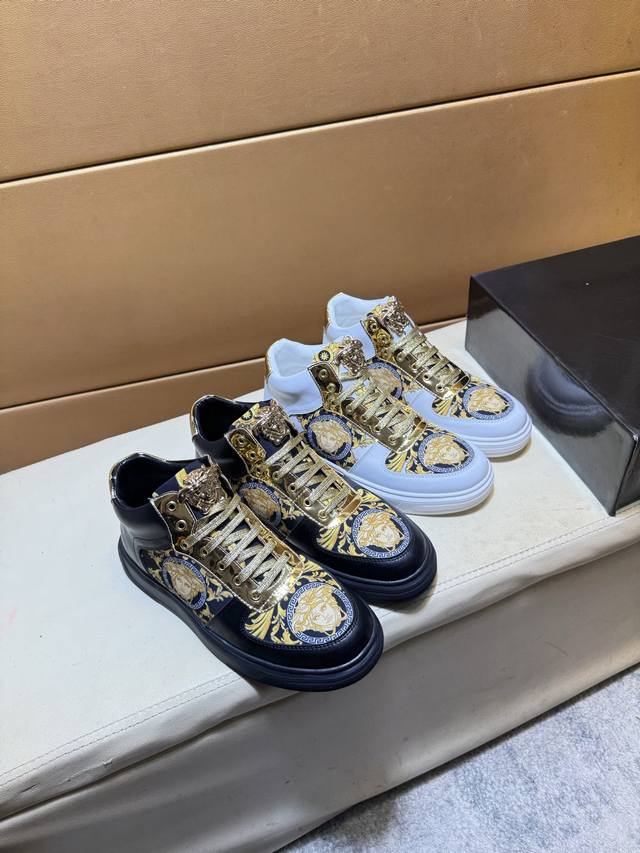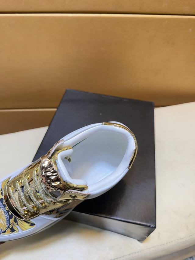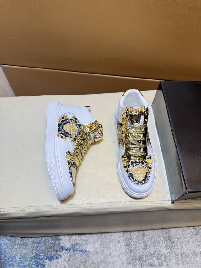 Versace 范思哲 原单品质.~ 独特现代风运动鞋。休闲鞋潮男必备款 意大利进口原版品牌,进口原版皮,羊里 拒绝脱色磨脚 鞋底:原厂特供原版底,法国懒人风格设计 贴脚 在贴原单品质 超舒服原版底 。就好像实物拍摄实物更赞 ,高品质板鞋,Wan 男鞋码数:38-44 DDD