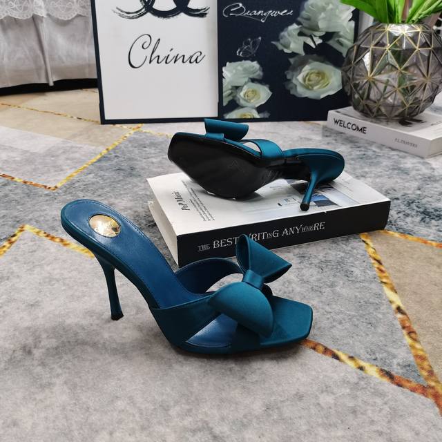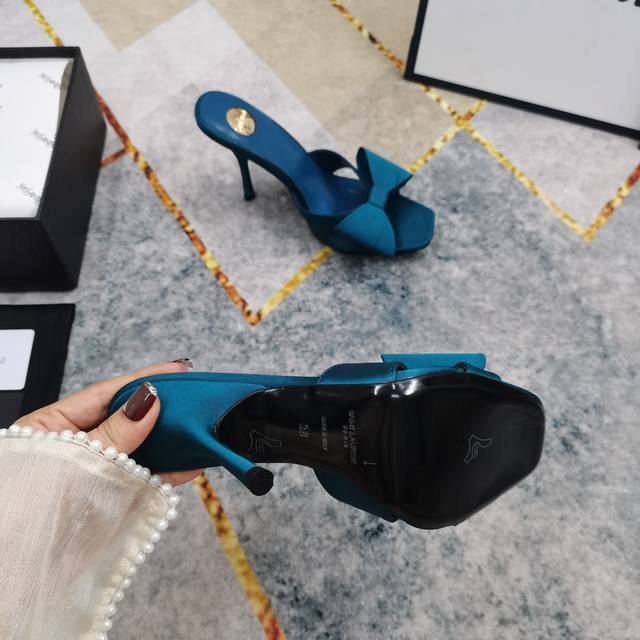 上新 Ysl 顶级高版本 2025官网同步新款蝴蝶结真丝拖鞋 细节处理完美 垫脚羊皮 质感细腻 Aaa级意大利黑色真皮大底 极致完美复刻 1鞋面:进口真丝 2垫脚:进口羊皮 3鞋底:Aaa级黑色真皮大底 4Size:34-43 34 41 42 43订做不退换 5跟高:10.5Cm 6Clour:6色入