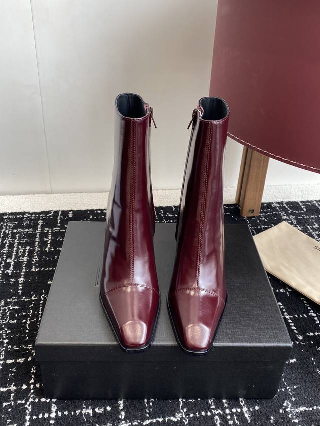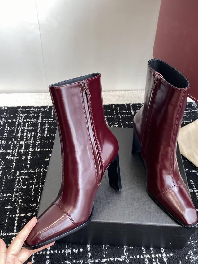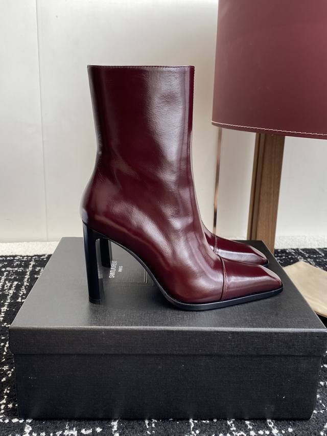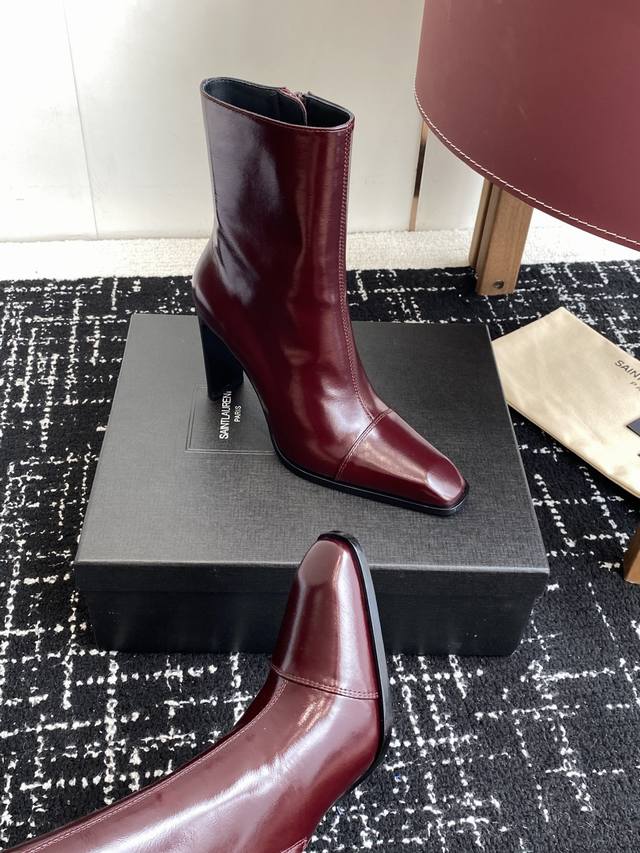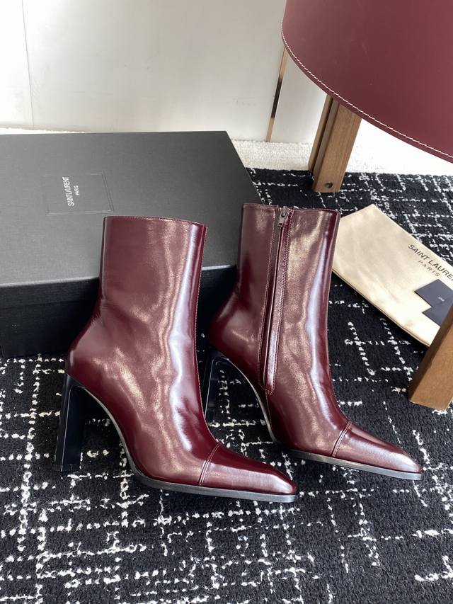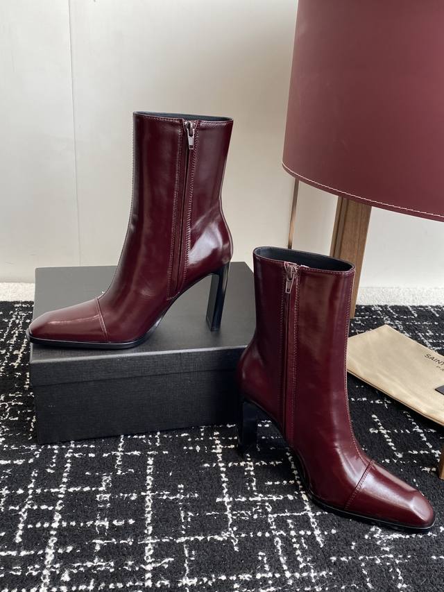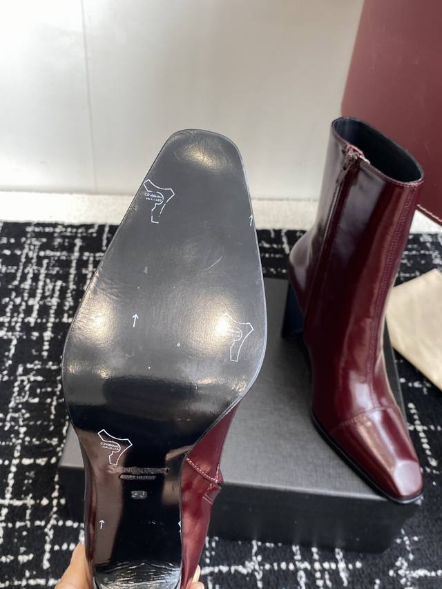 代购级短靴570 高靴 DDD Saint Laurent Fw25 New Arrival Ysl圣罗兰 DDD 2025秋冬新款侧拉链高跟及踝靴粗跟短靴 DDD 及踝靴,搭配方形尖鞋头和锥形粗跟,内侧饰以Le Cassandre,侧面拉链开合设计。 DDD 整个鞋非常的简约大气~小方头更加的精致时髦可以看到我们靴子侧面是按照人体腿型设计出来的弧度~上脚非常秀气好看不挑人~拉长腿型~适合各种场合搭配~秋冬穿搭必备单品! DDD 鞋面:牛皮 内里垫脚:羊皮 鞋底:意大利A级真皮大底 DDD 跟高:9.5C