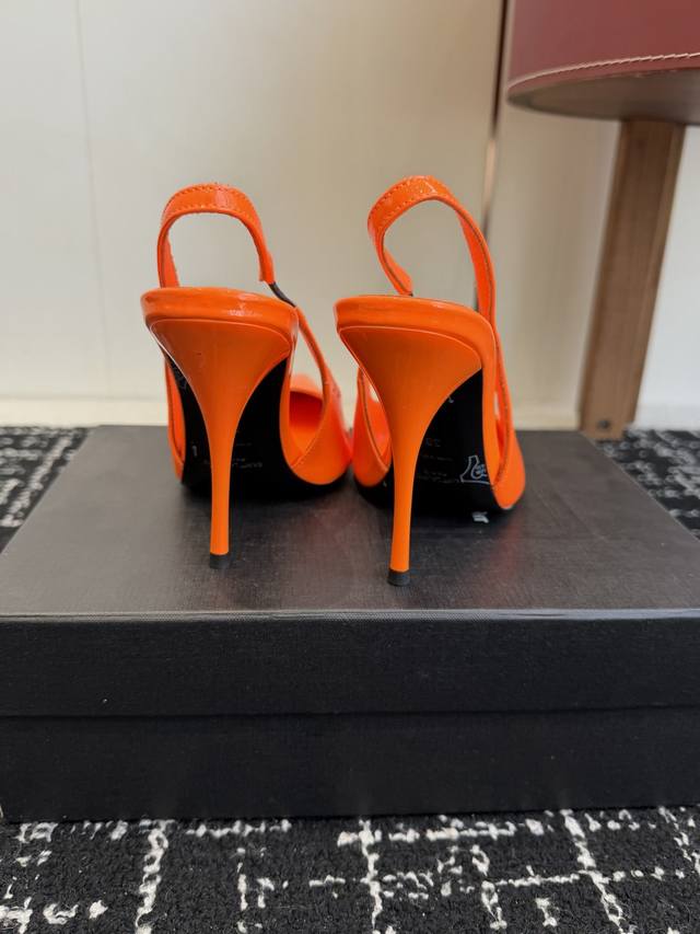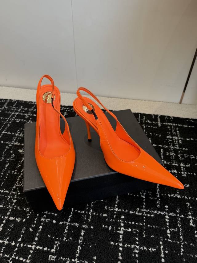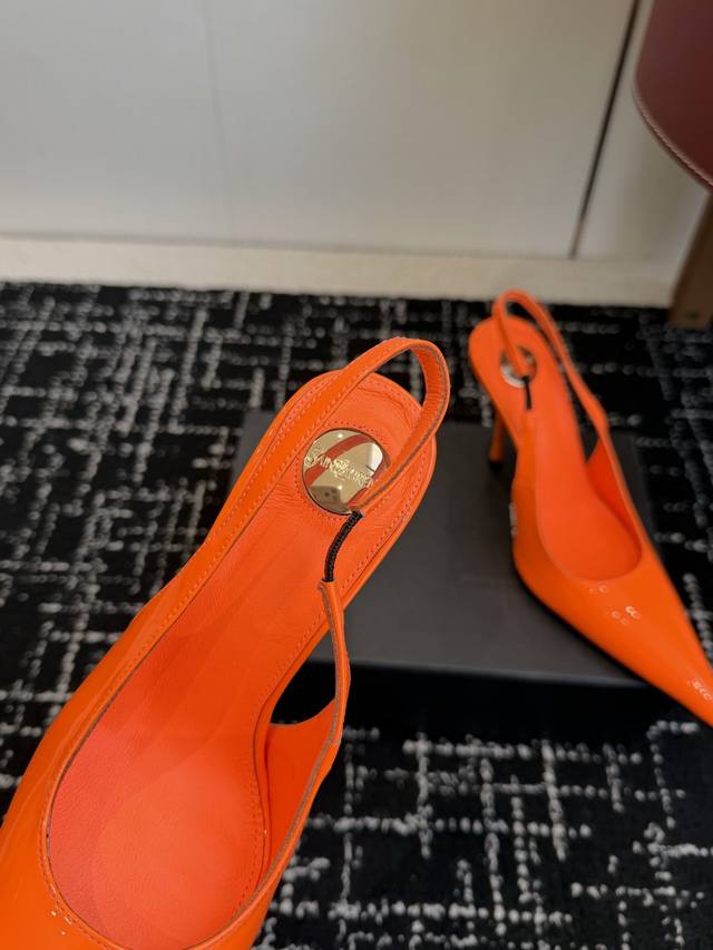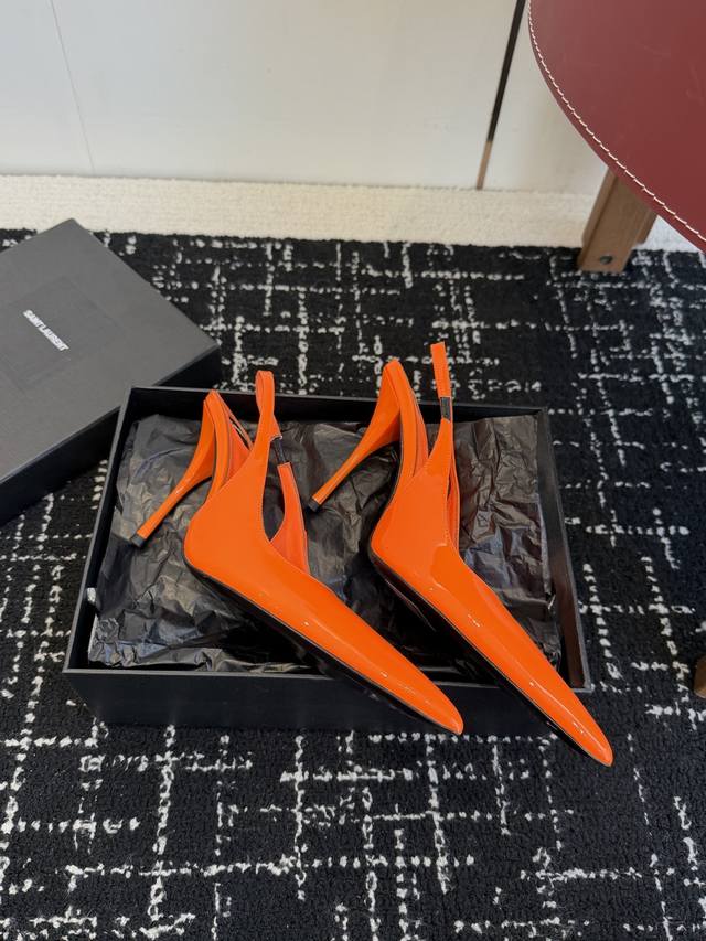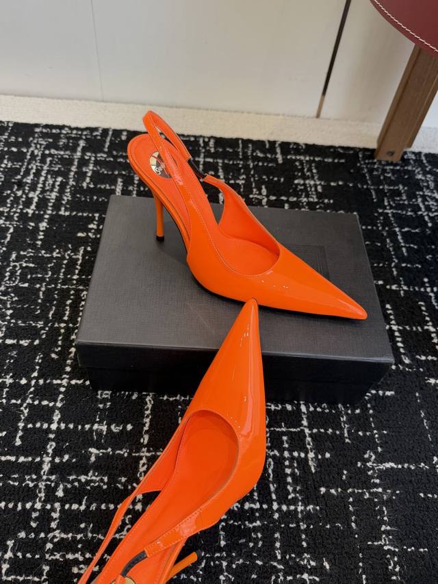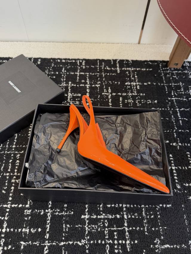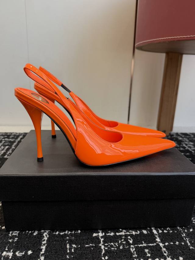橙子出厂价p saint Laurent 圣罗兰 Ysl字母跟 细带方头高跟凉鞋 跟高 10Cm 码数 34-40