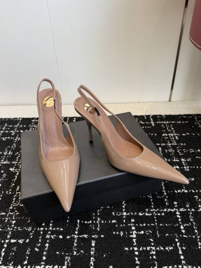 橙子出厂价p saint Laurent 圣罗兰 Ysl初夏新款 金跟一字带方头高跟凉鞋 高跟鞋 跟高 7Cm 9Cm 码数 34-41