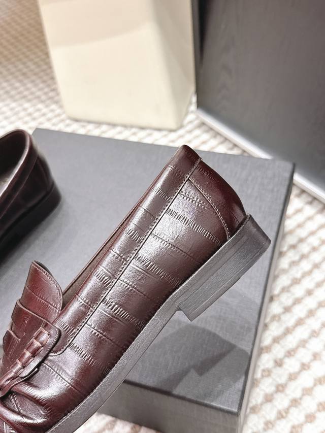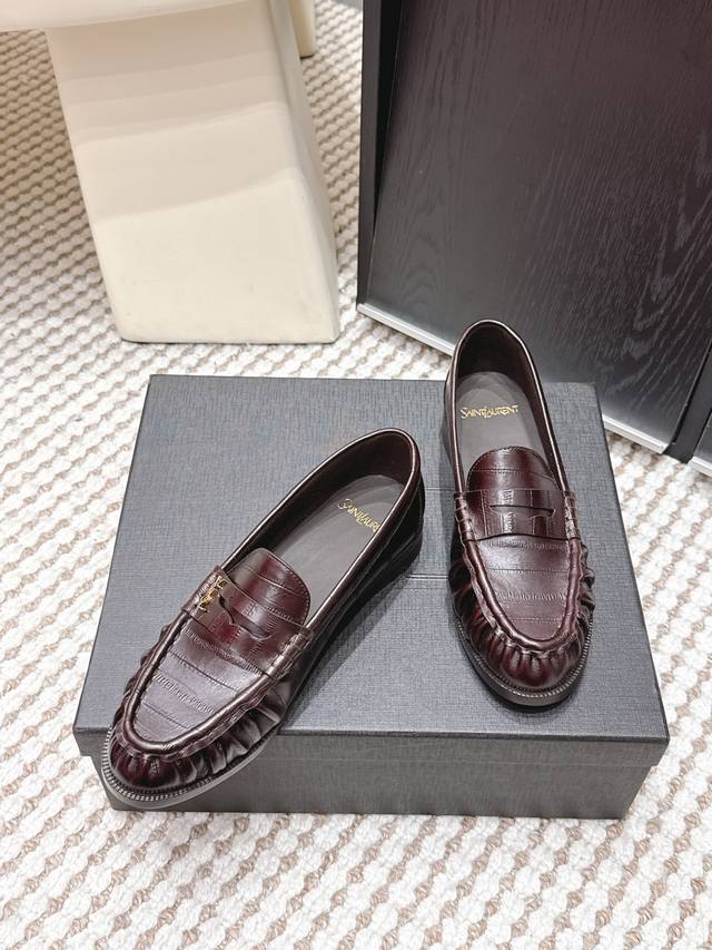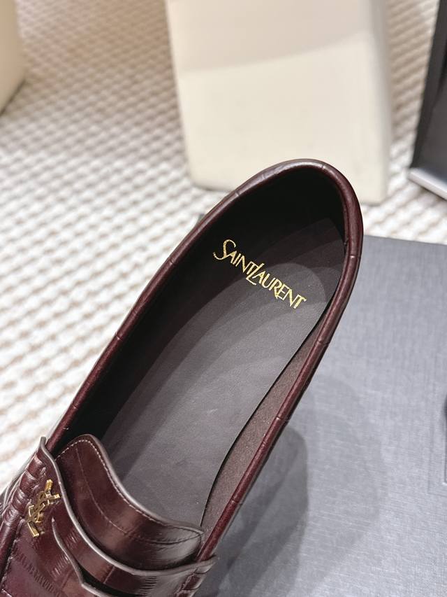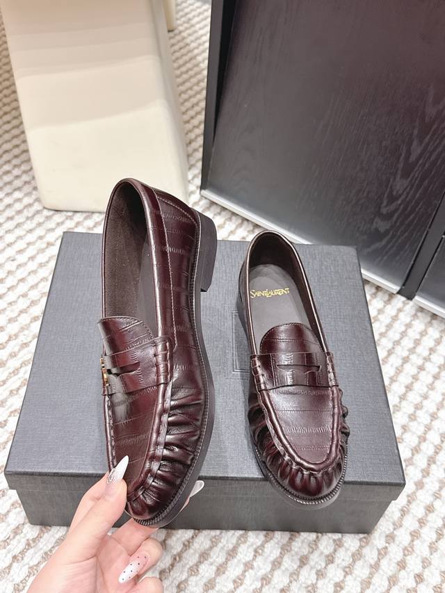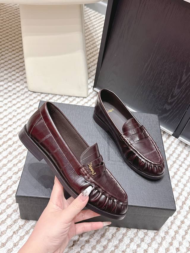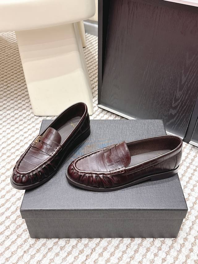 代购级 Ddd Yves Saint Laurent 25Ss新品Ysl小Logo乐福鞋 DDD 标志性的小Logo是这双鞋的灵魂所在,以低调而精致的姿态呈现于鞋身之上。不同于张扬的大标识 它安静却醒目,用简洁线条勾勒出Ysl独有的时尚Dna,在不经意间透露出品牌的深厚底蕴。 DDD 鞋头的经典杏仁形设计 巧妙修饰脚型,在视觉上拉长足部线条 彰显优雅与秀气 。无论是搭配简约阔腿裤 还是俏皮小短裙,都能轻松驾驭 展现不同风格魅力 Ddd 成为造型中的点睛之笔。 DDD 面料:采用原版定制皮料 Ddd 内里: