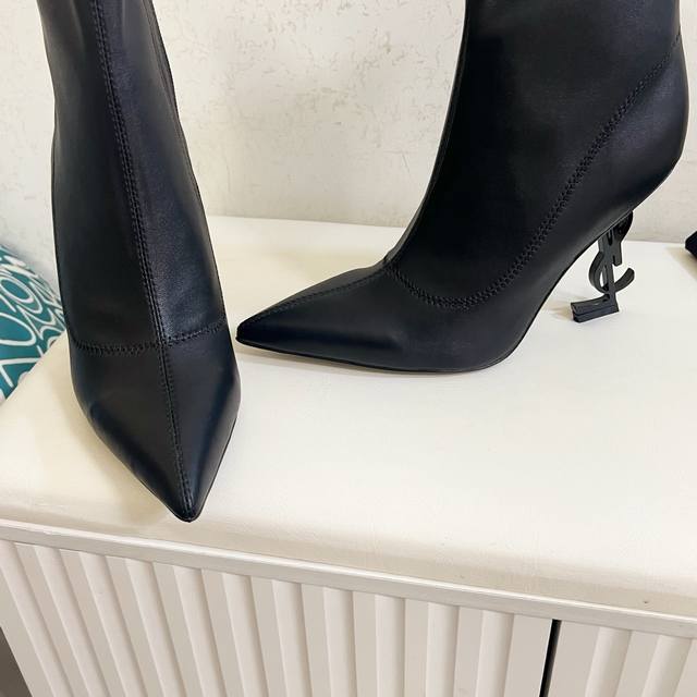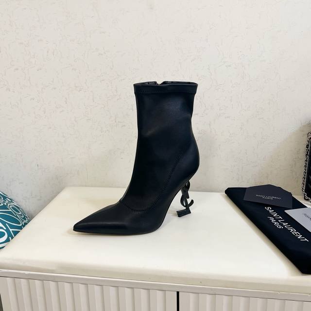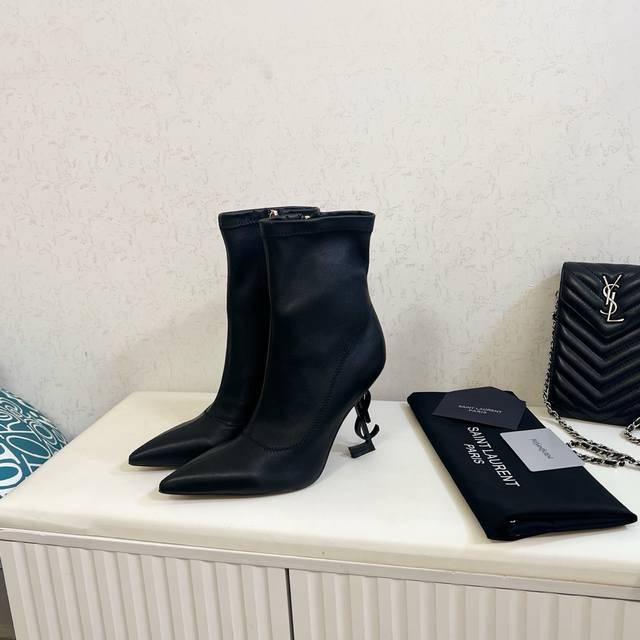 顶级品质Saint Laurent Fw25 New Arrival~Ysl圣罗兰2025秋冬新款侧拉链高跟及踝靴锥形跟短靴及踝靴,搭配方形尖鞋头和锥形粗跟,内