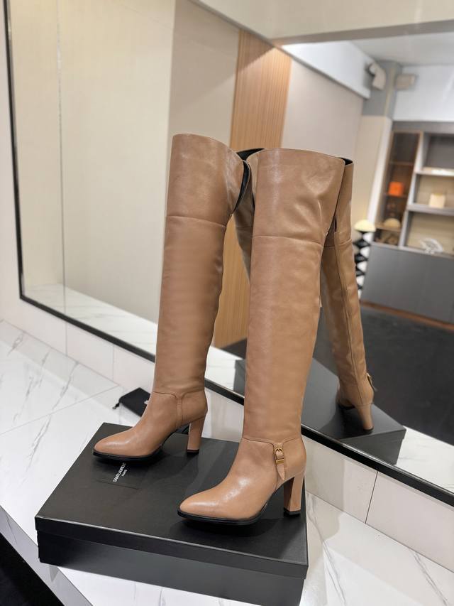 出厂价Pp: Saint Laurent圣罗兰 Jill 霸气侧漏过膝长靴秒变大长腿8.5Cm轻松驾驭 DDD 鞋面采用进口牛皮 内里水晶羊皮 鞋底:意大利真皮