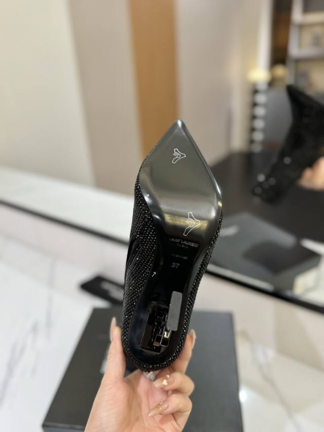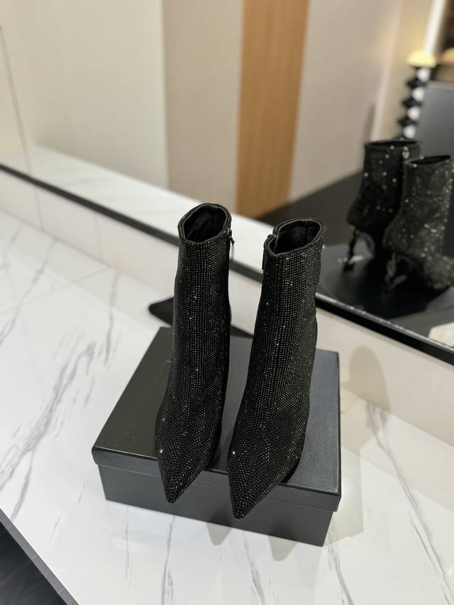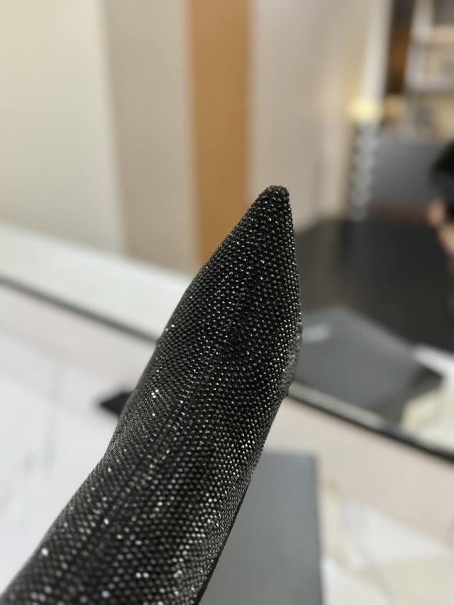 出厂价pp: ,圣罗兰Opyum系列的水钻尖头短靴,品牌标志性的奢华 码数:35-42 全真皮+满钻奢华配置...