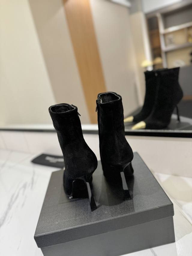 / 出厂价Pp: Ysl 圣罗兰 金属鞋头尖头拉链高跟短靴 走秀款短靴。各种小裙子搭配起来 DDD 面料:漆皮 羊京 DDD 大底:真皮大底 DDD 码数:35-3