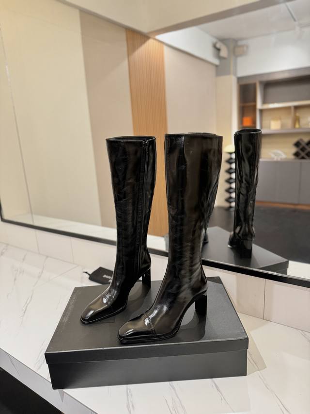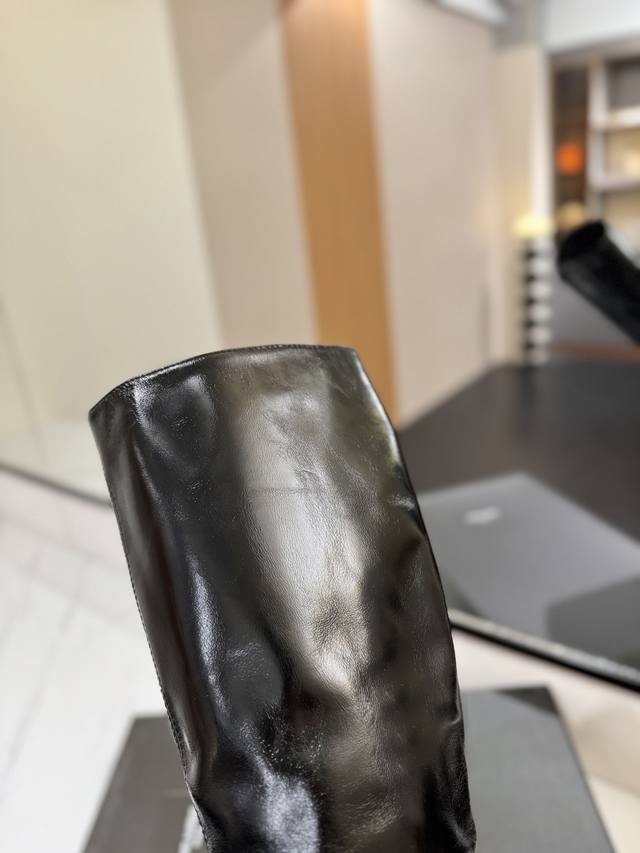 出厂价ppp: 上新Ysl2025新款侧拉链套筒长靴 细节处理完美 垫脚羊皮 质感细腻 Aaa级意大利黑色真皮大底 极致完美复刻 1鞋面:进口牛皮 2垫脚:进口