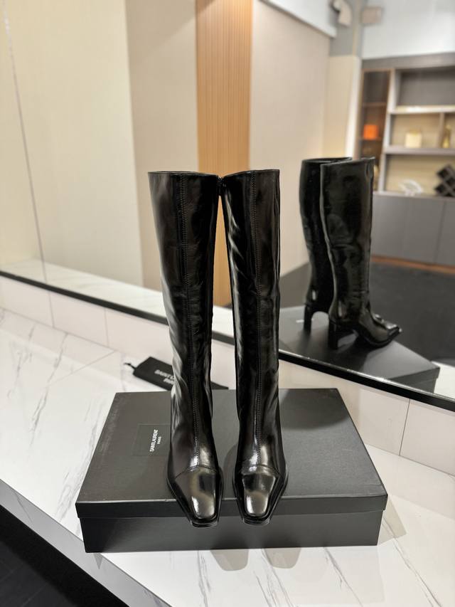 / 出厂价ppp: 上新Ysl2025新款侧拉链套筒长靴 细节处理完美 垫脚羊皮 质感细腻 Aaa级意大利黑色真皮大底 极致完美复刻 1鞋面:进口牛皮 2垫脚:进口
