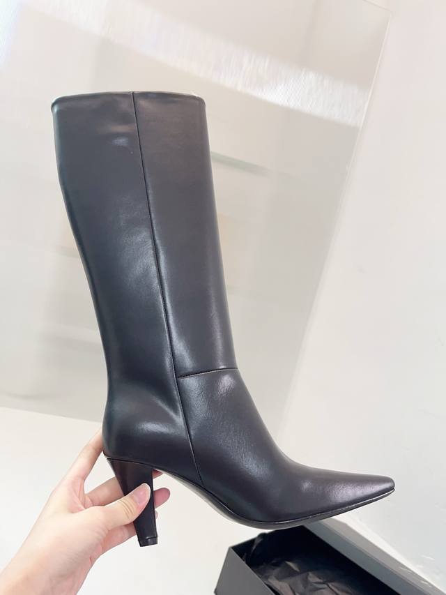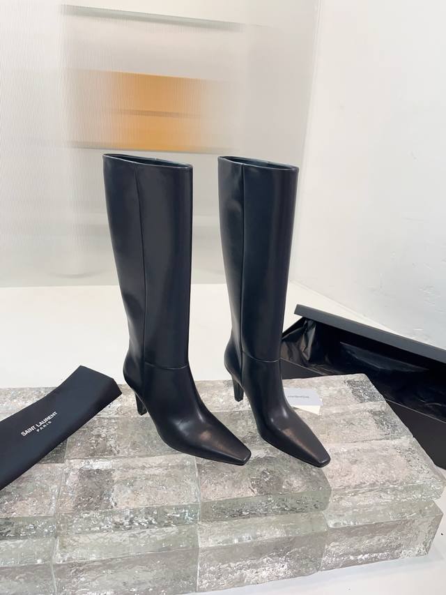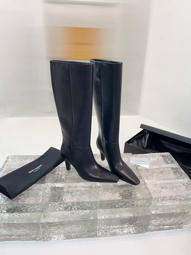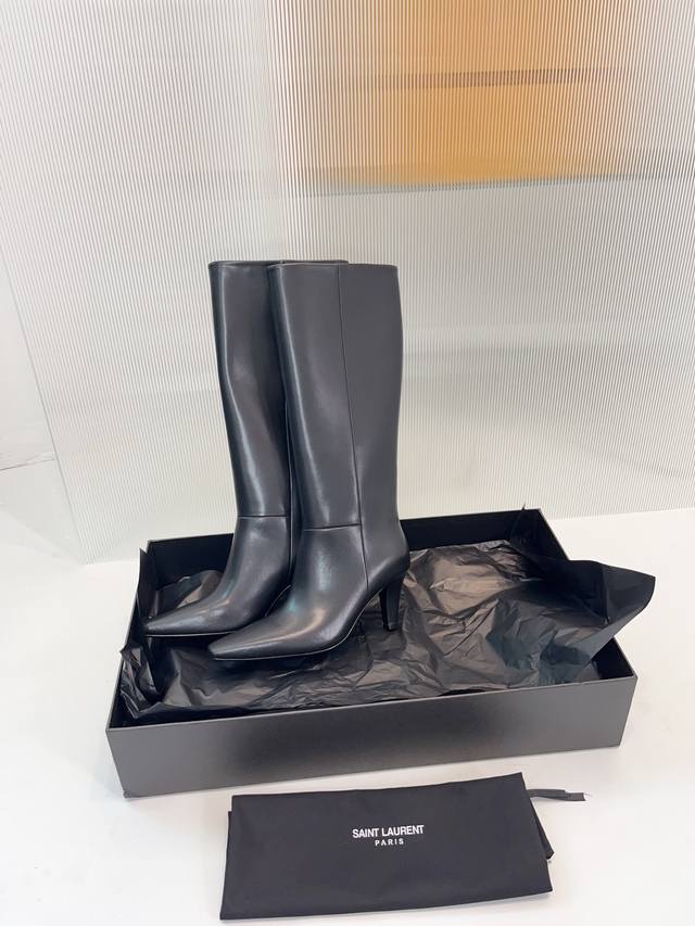 / 圣罗兰高跟长靴,Ysl这款靴子的设计亮点在于其独特圆头鞋,强烈的视觉冲击力为您带来更多魅力气场。 材质 鞋面:牛皮 内里:原版内里 大底:原版大底 跟高:7Cm