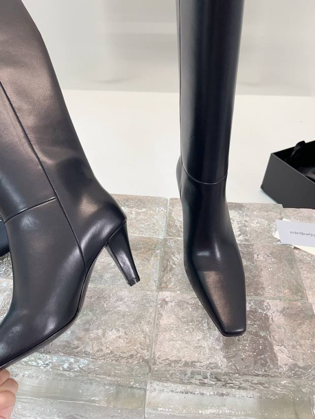 圣罗兰高跟长靴,Ysl这款靴子的设计亮点在于其独特圆头鞋,强烈的视觉冲击力为您带来更多魅力气场。 材质 鞋面:牛皮 内里:原版内里 大底:原版大底 跟高:7Cm 码数:35-39 其他码数定做