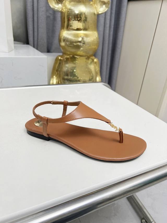 工厂p价p saint Laurent paris 圣罗兰2025春夏新款豹纹女鞋 Ysl字母Logo五金扣明星同款平底圆头罗马风露趾凉拖鞋 材质:鞋面进口混种