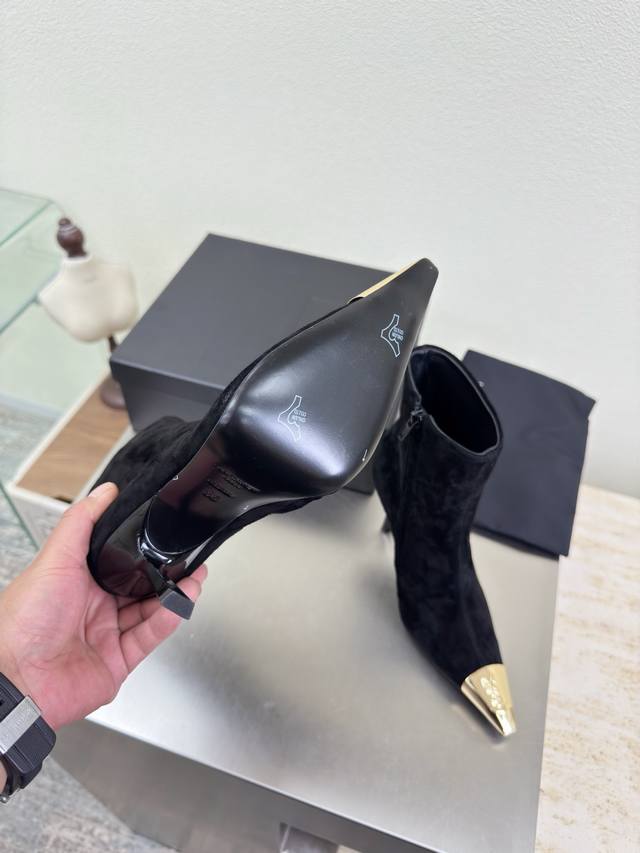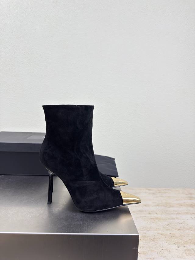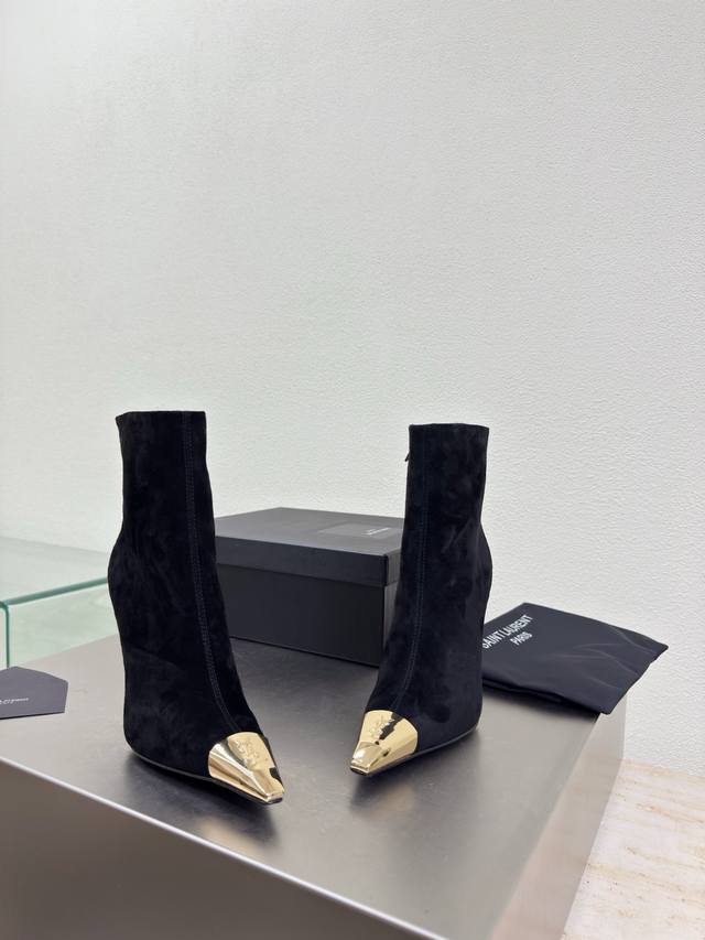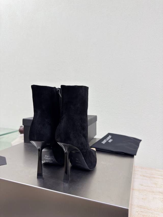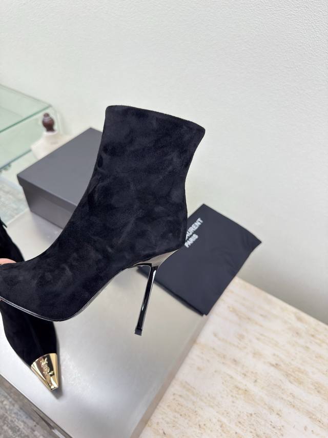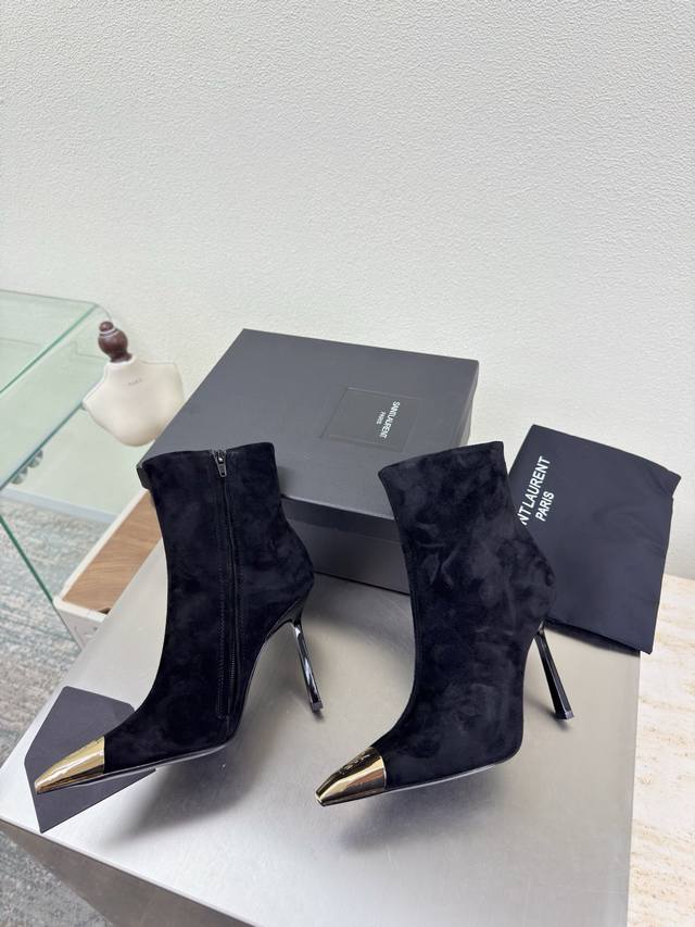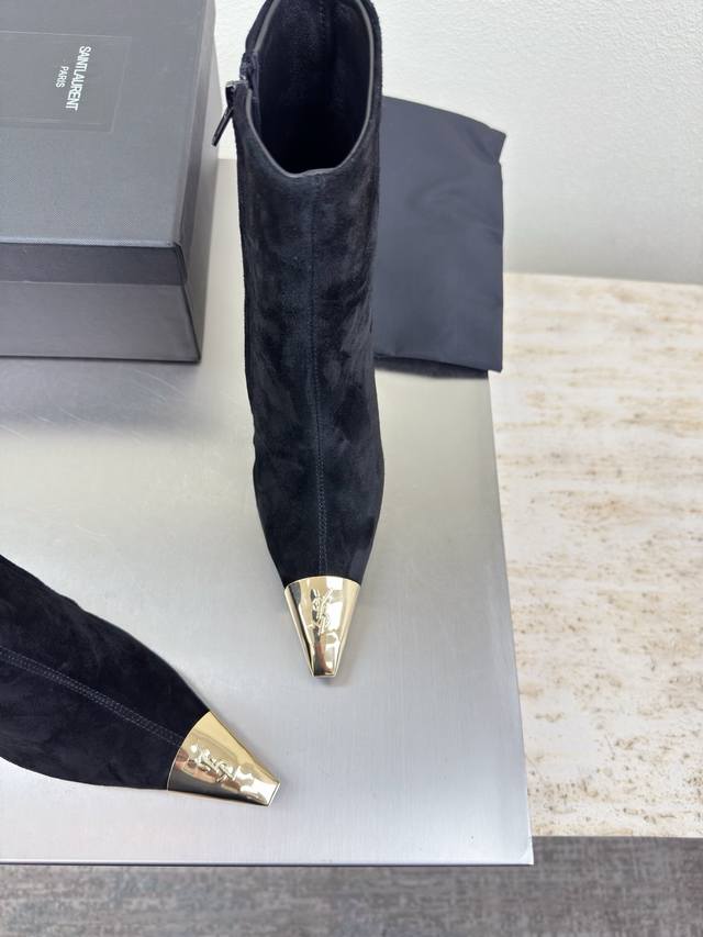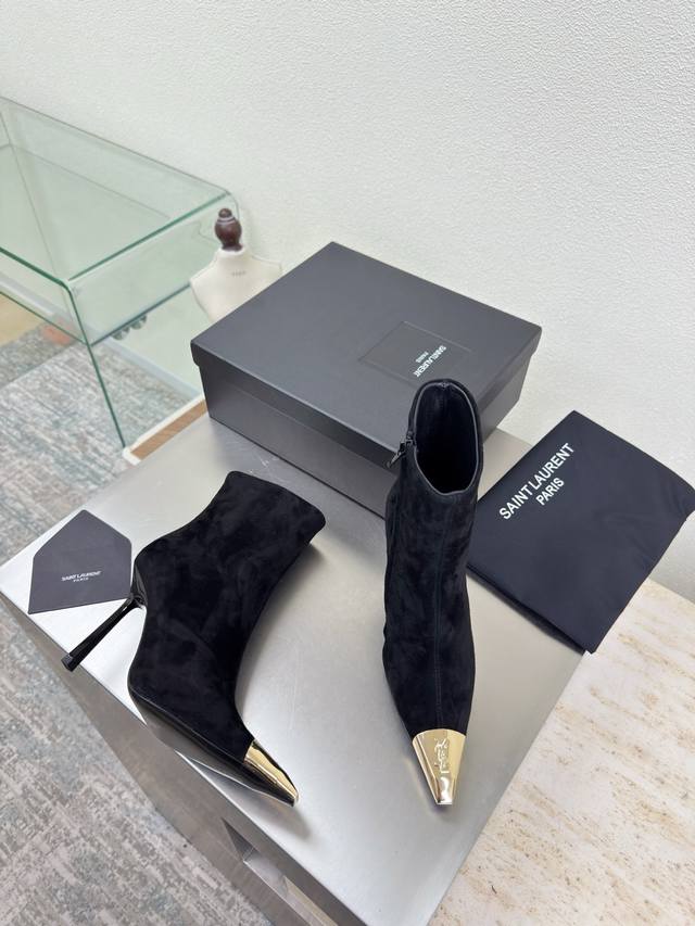 大长腿必备 金属头 Ysl 高跟短靴 Yvette Saint Laurent圣罗兰Logo 精致高跟 黑色 最懂女人心的杨树林 无死角的美鞋 撑起气场 高丝光