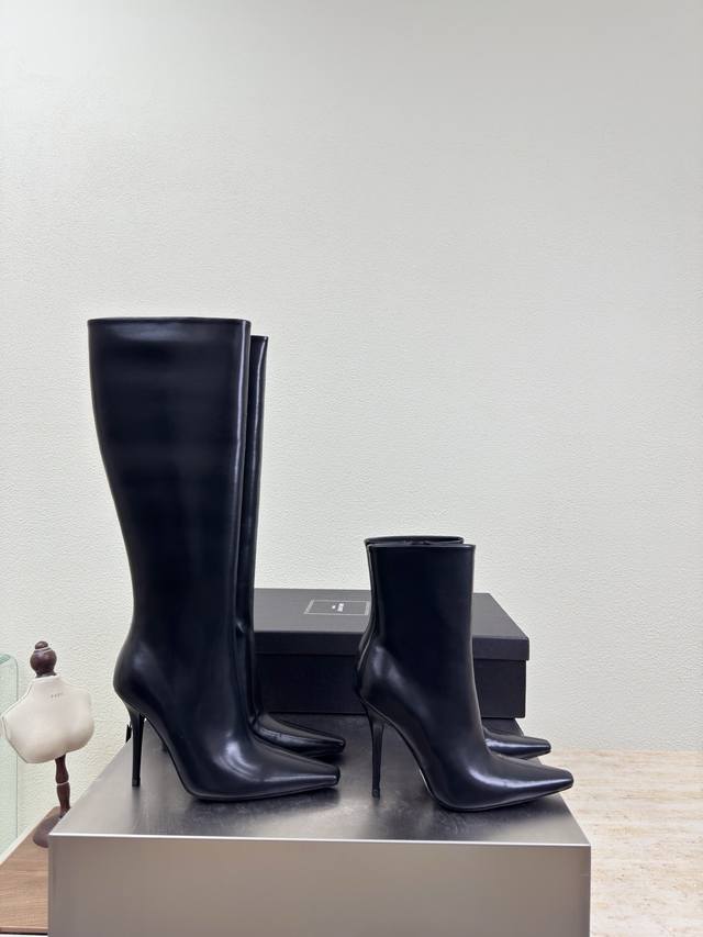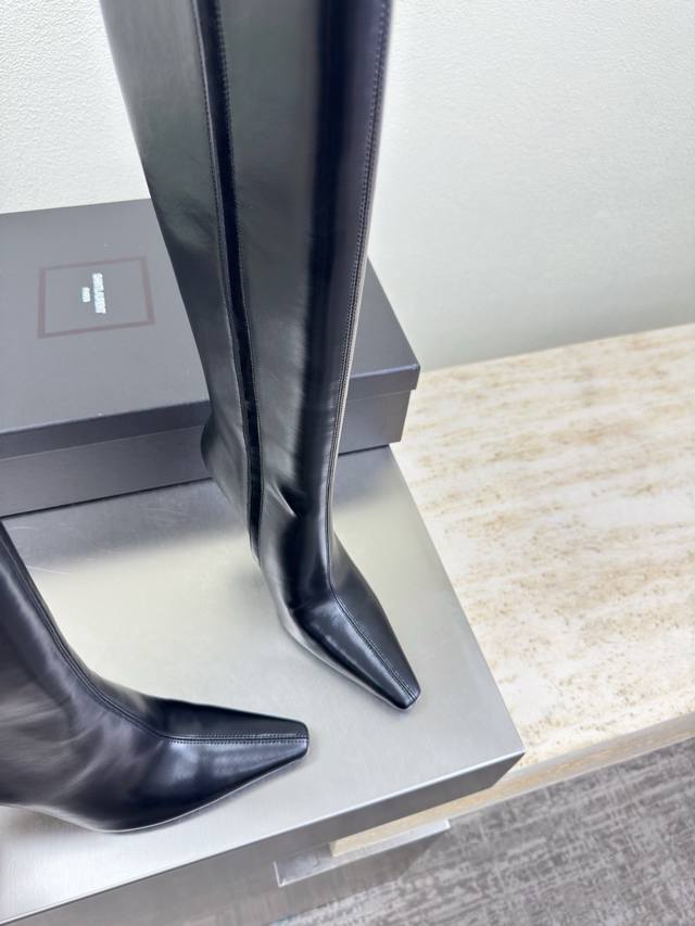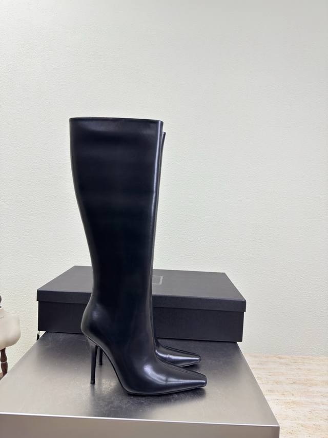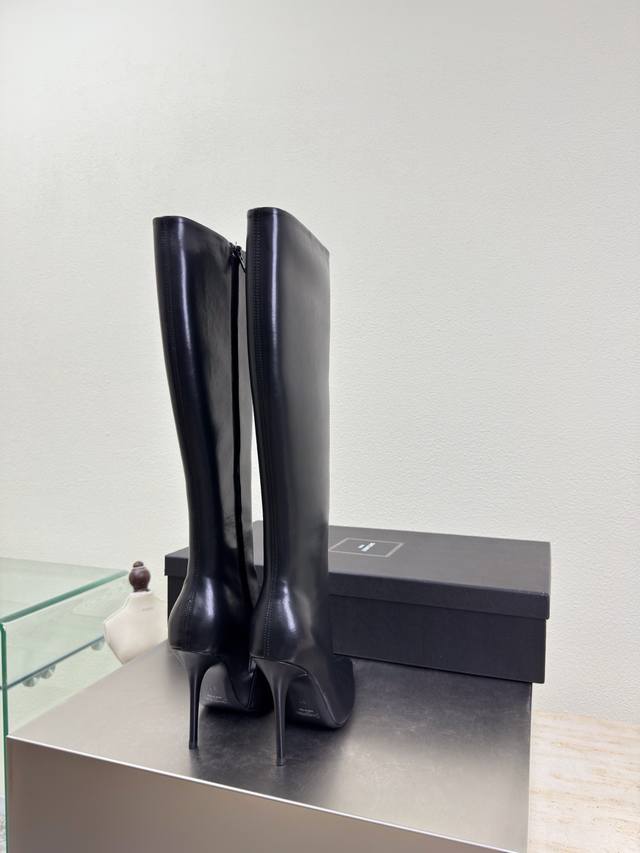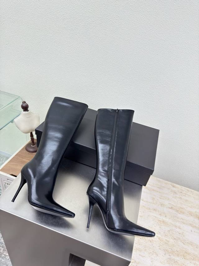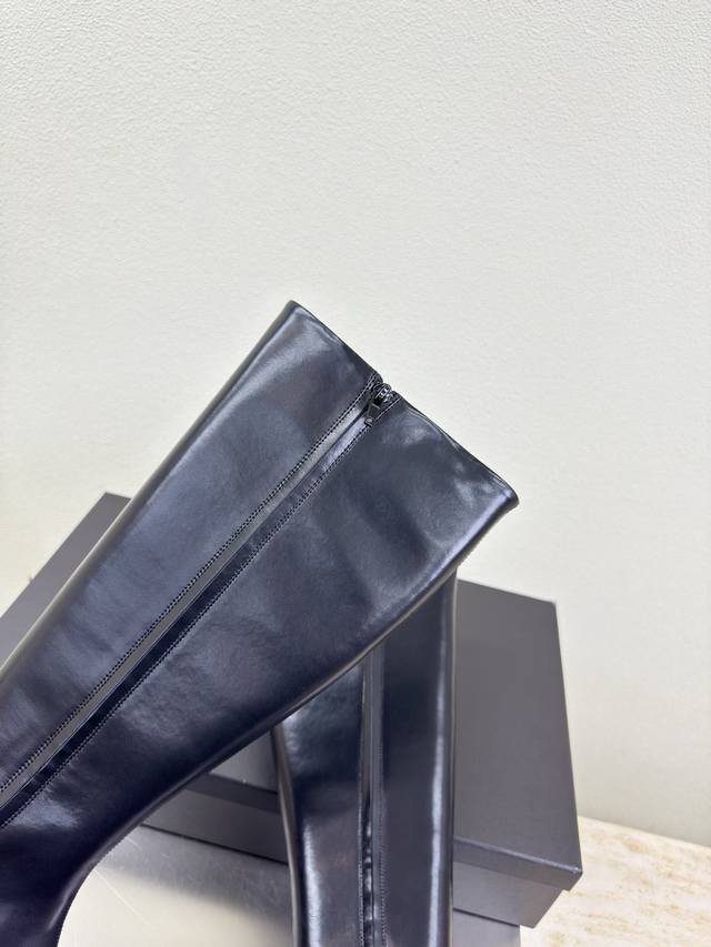 / 小方头 牛油皮高靴 大长腿必备 Ysl 高跟 长靴 Yvette Saint Laurent圣罗兰Logo 精致高跟 黑色高靴最懂女人心的杨树林 无死角的美鞋