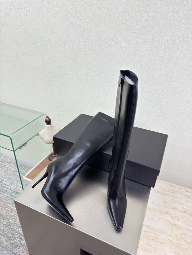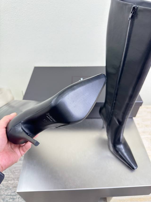 小方头 牛油皮高靴 大长腿必备 Ysl 高跟 长靴 Yvette Saint Laurent圣罗兰Logo 精致高跟 黑色高靴最懂女人心的杨树林 无死角的美鞋