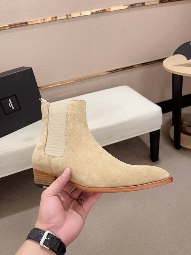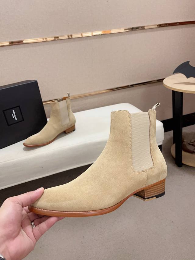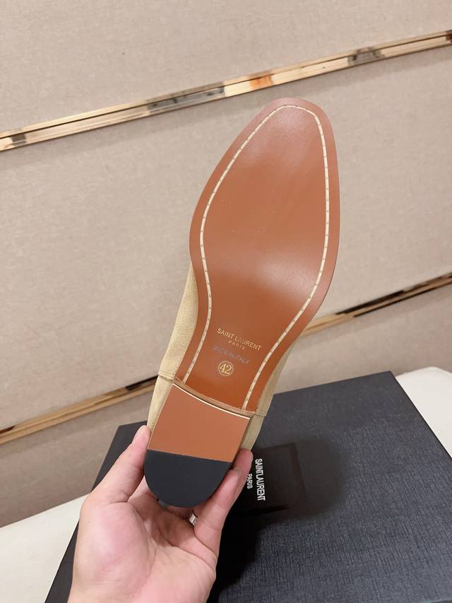 工厂p价 圣罗兰 原单 时尚男靴 -材质,鞋面进口反绒牛皮,-内里垫脚均用进口水染牛皮,-原版真皮大底-时尚潮流元素,侧面搭配活动扣件,易穿易脱,高端大气,流畅的鞋型线条,气场十足-Size 39-44。可定做.37-38-45-46-47。不退换 DDD
