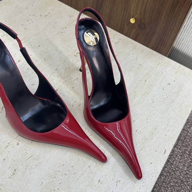FFF 工厂P价P DDD Saint Laurent Paris 圣罗兰2026早春新款高跟女凉鞋 Ysl字母Logo明星同款尖头细跟后空女巫鞋 DDD 材质:鞋面进口牛漆皮 进口真丝面料+水染羊皮里+意大利真皮大底 DDD 跟高:9.5Cm DDD Size:35-42 40.41.42订做不退换 DDD