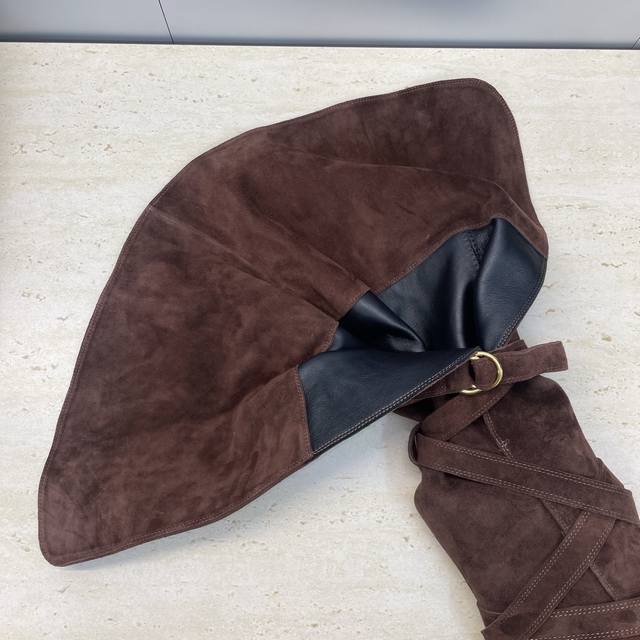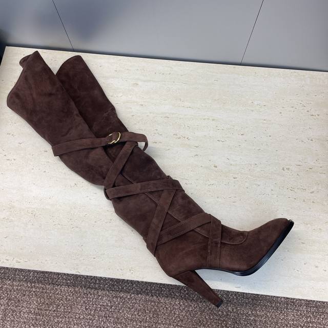 / 工厂p价p Saint Lauren 圣罗兰 2025秋冬新款粗跟尖头过膝骑士气场女长靴 Ysl字母Logo五金皮带扣高跟一脚蹬高筒机车马丁靴 材料:鞋面进口小