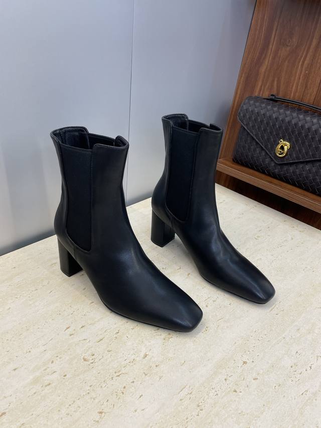 工厂P价P Saint Laurent 圣罗兰 2025秋冬新款切尔西粗跟弹力女靴 Ysl字母Logo方头高跟一脚蹬机车骑士短靴 材质:鞋面进口牛皮+进口混种羊皮内里+意大利真皮大底 跟高:7Cm Size:35-41 40.41定制不退换