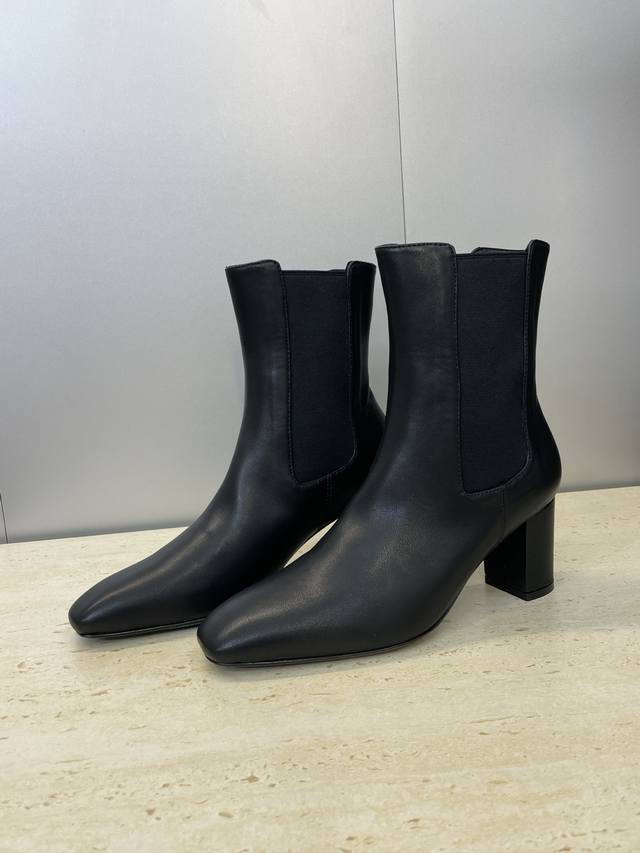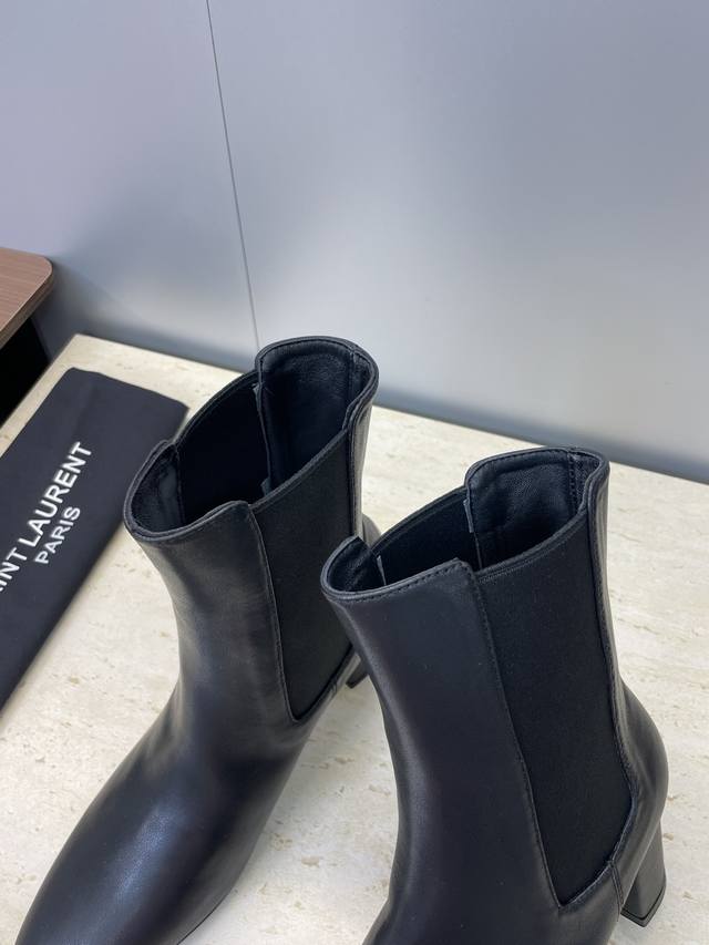 工厂P价P Saint Laurent 圣罗兰 2025秋冬新款切尔西粗跟弹力女靴 Ysl字母Logo方头高跟一脚蹬机车骑士短靴 材质:鞋面进口牛皮+进口混种羊
