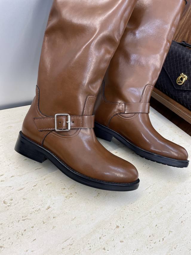 工厂P价P Saint Laurent 圣罗兰 2025秋冬新款及膝女靴 Ysl字母Logo五金皮带扣厚底低跟圆头机车骑士高筒长靴 材质:鞋面进口小牛皮+进口混种羊皮内里+意大利真皮大底 跟高:3Cm Size:35-41 40.41定制不退换