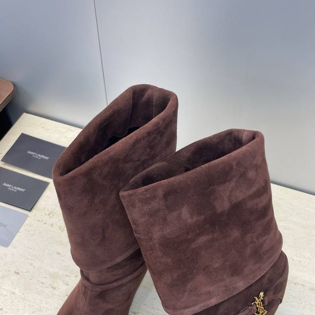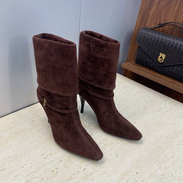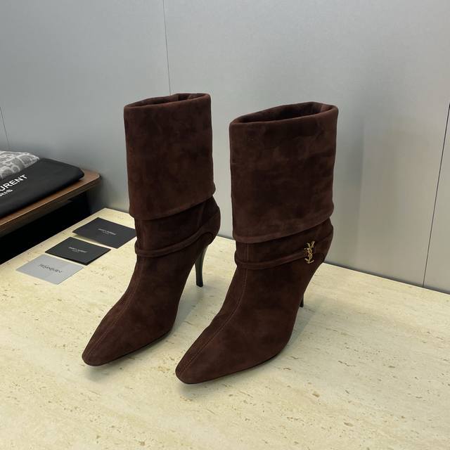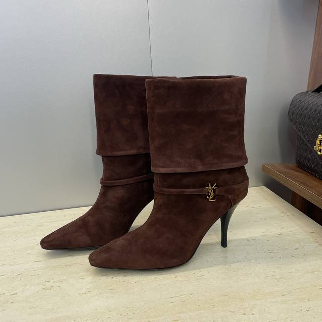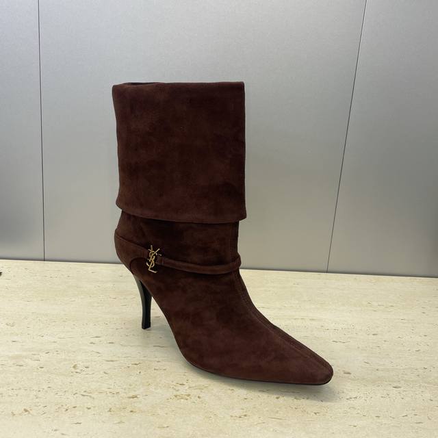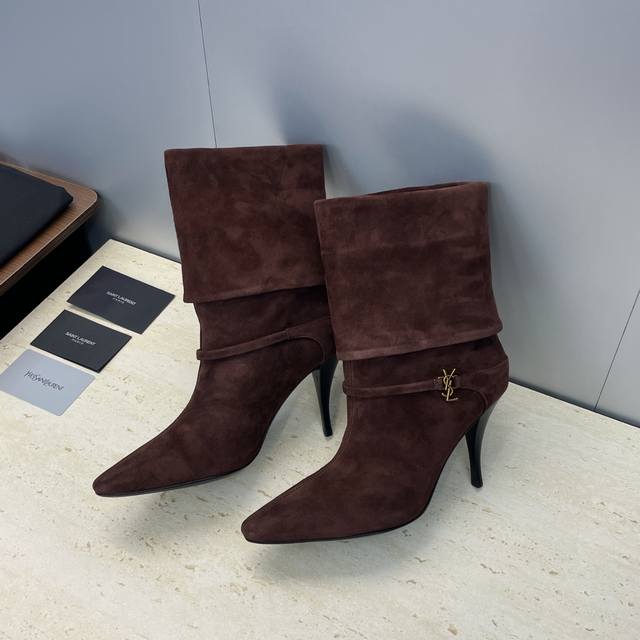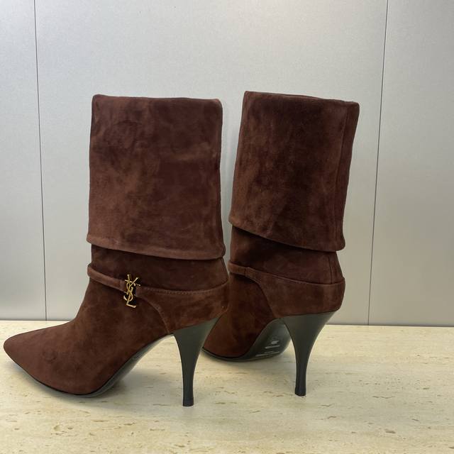 工厂p价p Saint Laurent 圣罗兰 2025秋冬新款马丁女靴 Ysl字母Logo五金扣尖头高跟气场机车骑士短靴 材质:鞋面进口羊猄皮+混种羊皮内里+