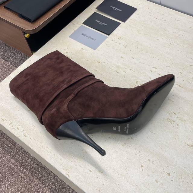 / 工厂p价p Saint Laurent 圣罗兰 2025秋冬新款马丁女靴 Ysl字母Logo五金扣尖头高跟气场机车骑士短靴 材质:鞋面进口羊猄皮+混种羊皮内里+