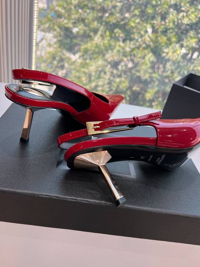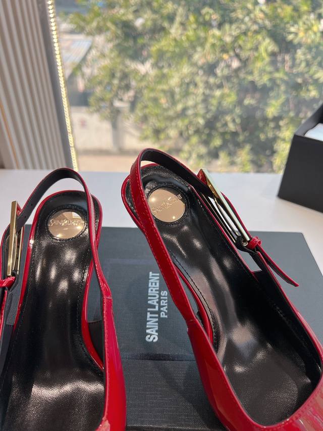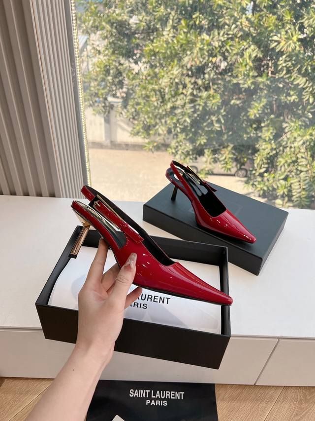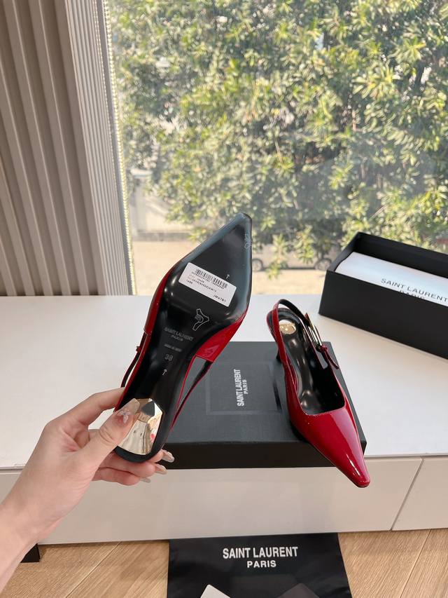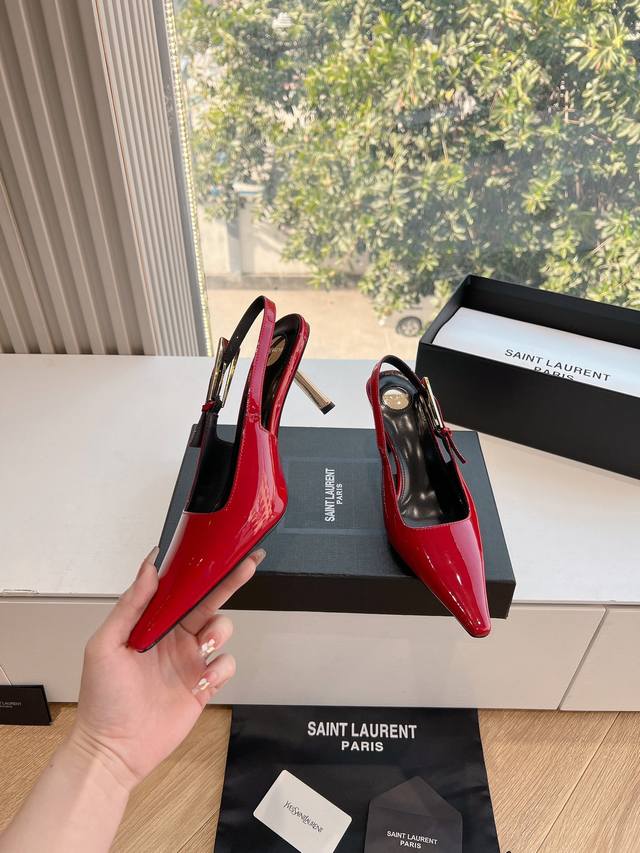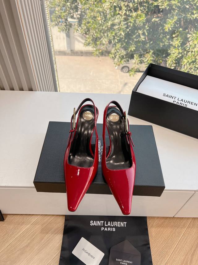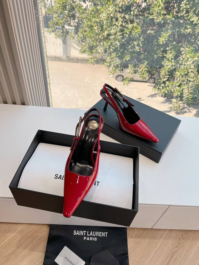 Saint Laurent 圣罗兰最新走秀款Ysl银头字母高跟鞋小方头后空凉鞋 走秀款 把美丽刑锯表现的淋漓尽致 姐姐的美丽尤物平底鞋...