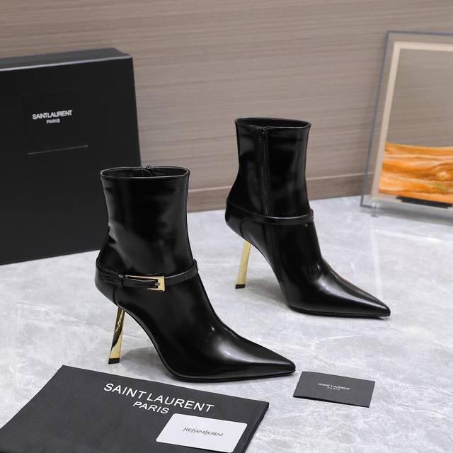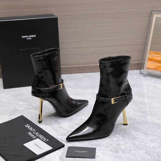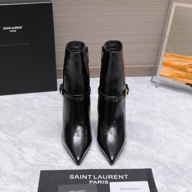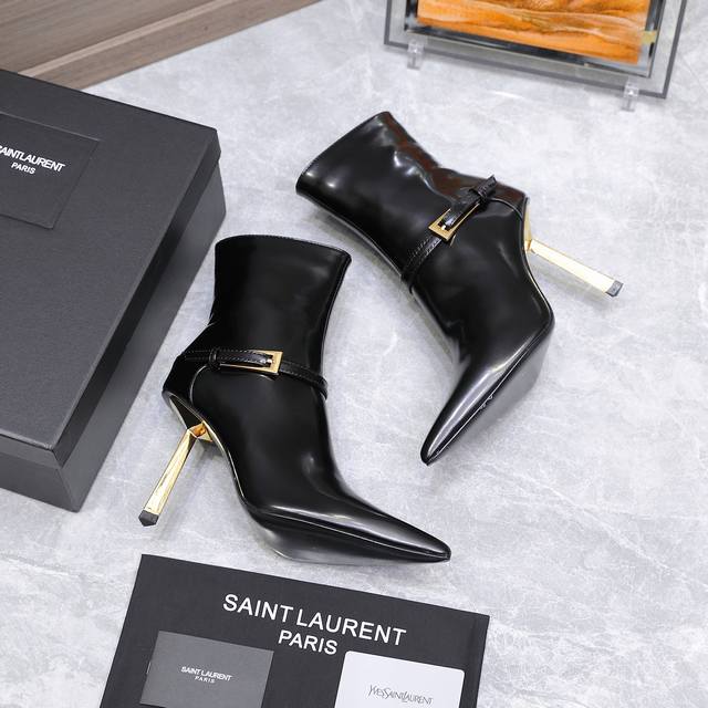 最高版本 Saint Laurent Ysl圣罗兰尖头高跟及踝短靴 Ysl这款靴子的设计亮点在于其独特的方形尖鞋头,强烈的视觉冲击力为您带来更多魅力气场。设计犹