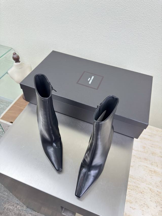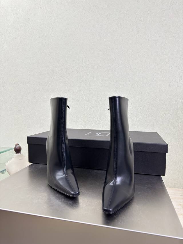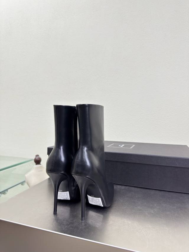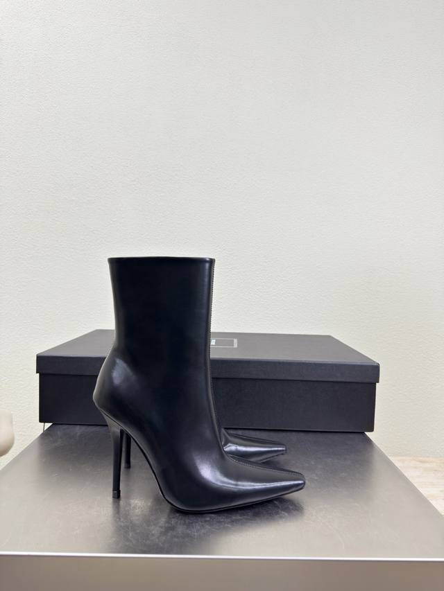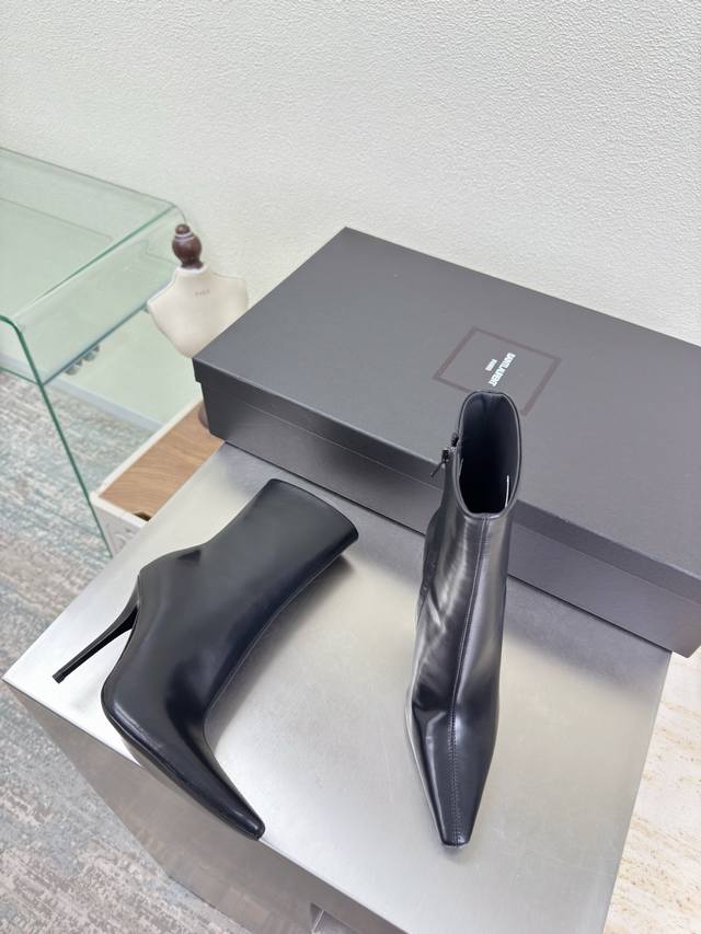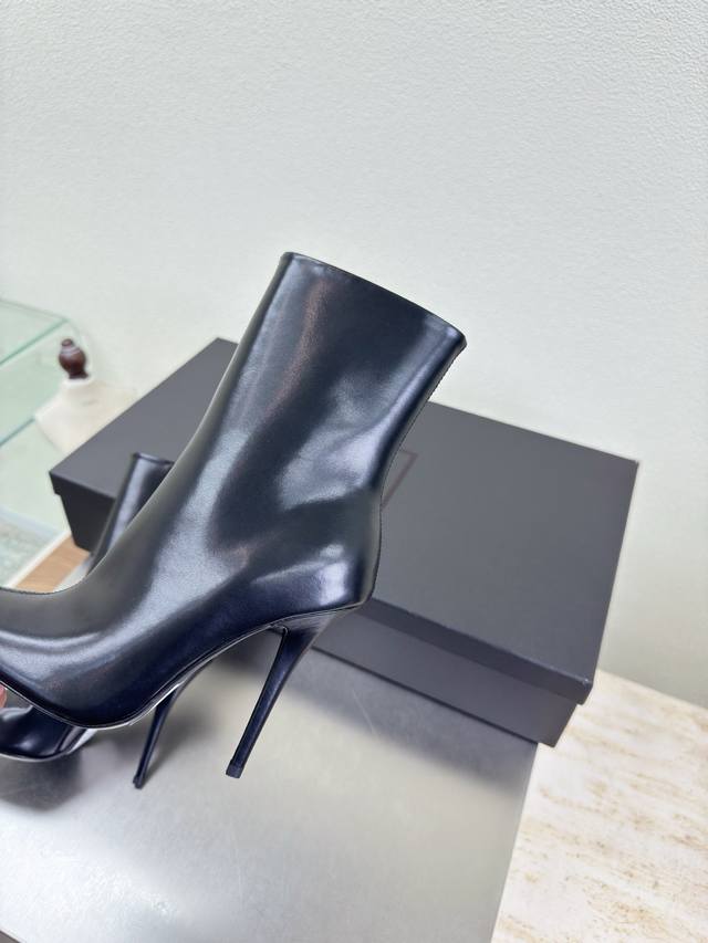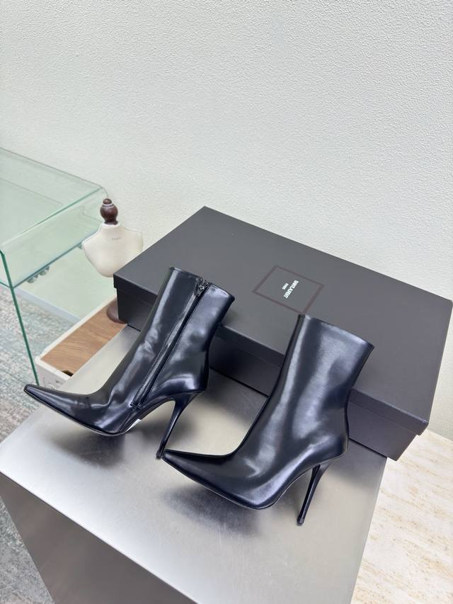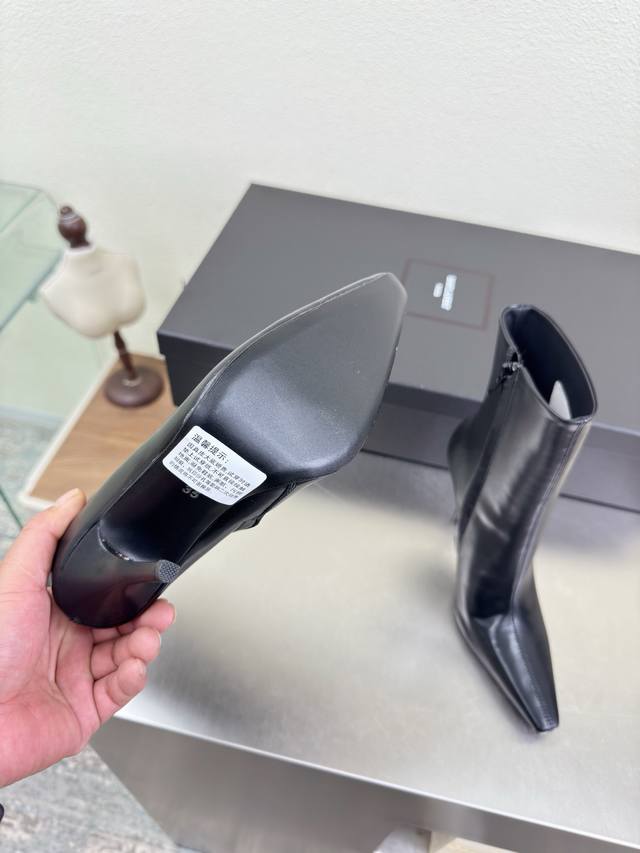 牛油皮短靴 大长腿必备 Ysl 高跟 短靴 Yvette Saint Laurent圣罗兰Logo 精致高跟 黑色牛油皮 最懂女人心的杨树林 无死角的美鞋 撑起