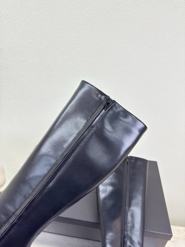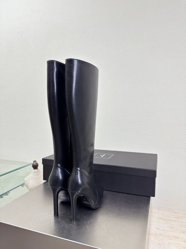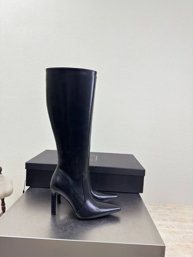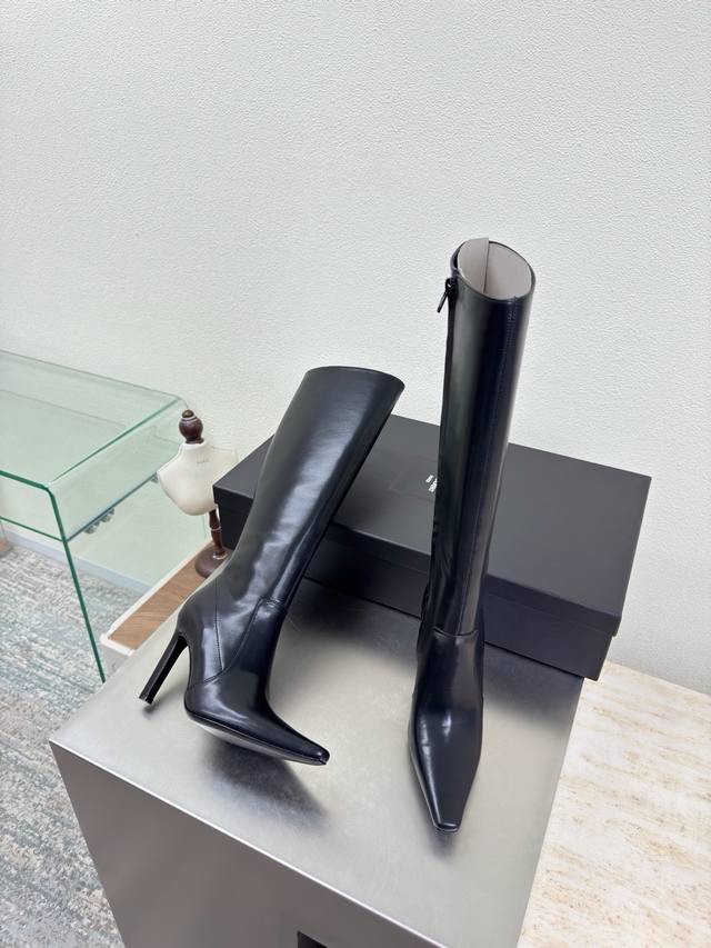 / 牛油皮高靴 大长腿必备 Ysl 高跟 长靴 Yvette Saint Laurent圣罗兰Logo 精致高跟 黑色牛油皮 最懂女人心的杨树林 无死角的美鞋 撑起