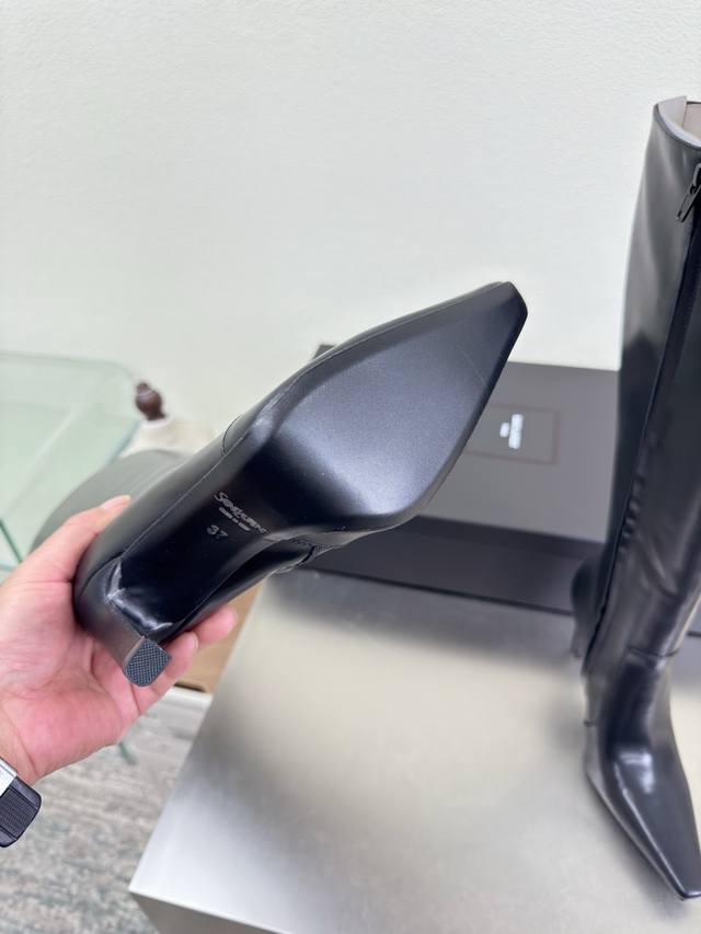 牛油皮高靴 大长腿必备 Ysl 高跟 长靴 Yvette Saint Laurent圣罗兰Logo 精致高跟 黑色牛油皮 最懂女人心的杨树林 无死角的美鞋 撑起