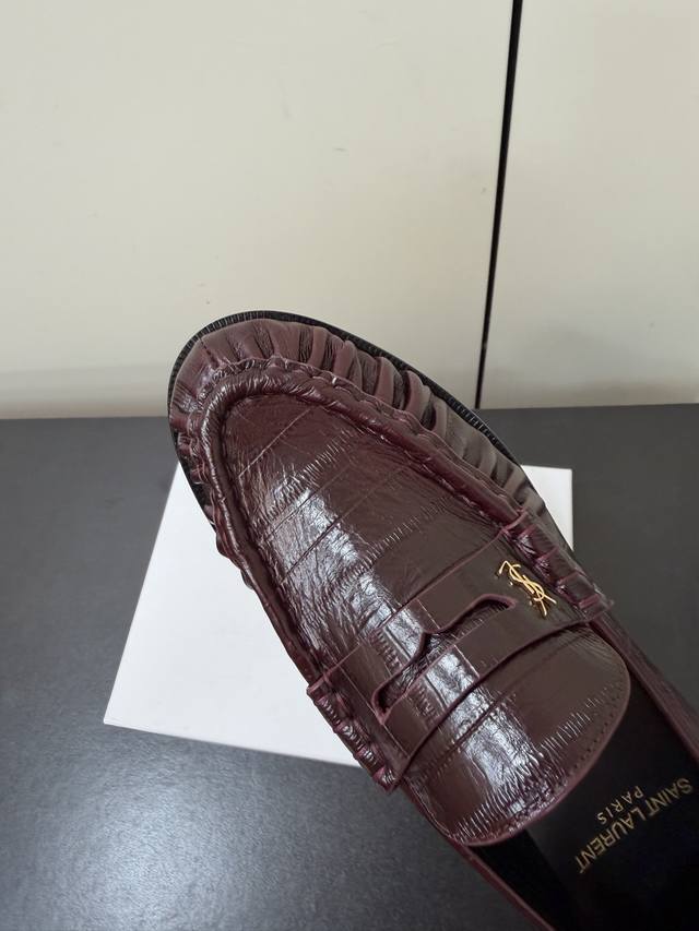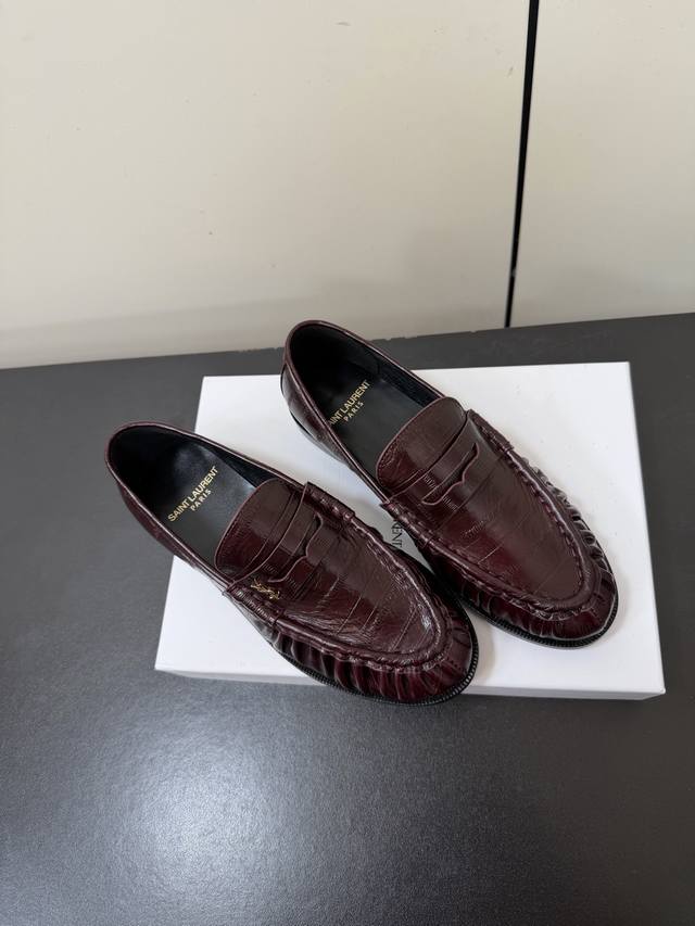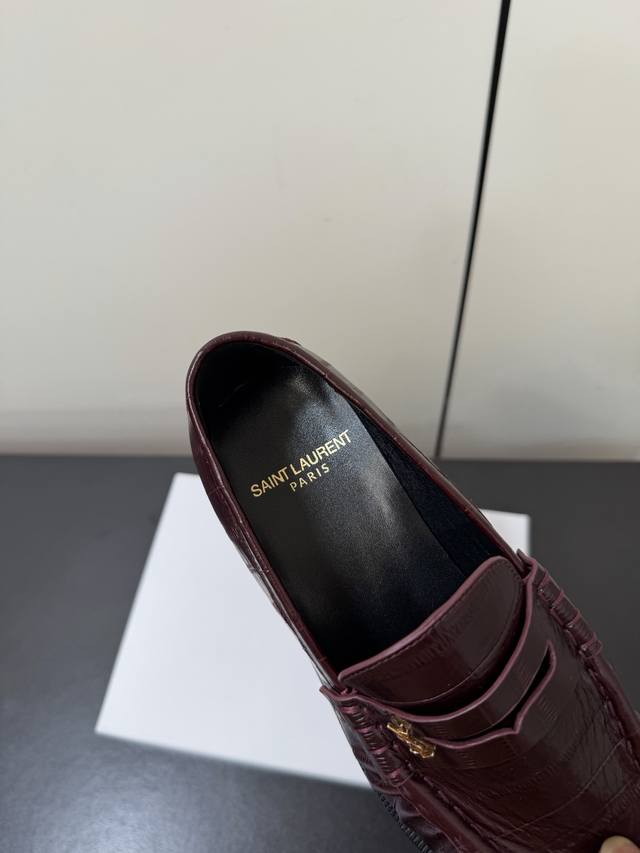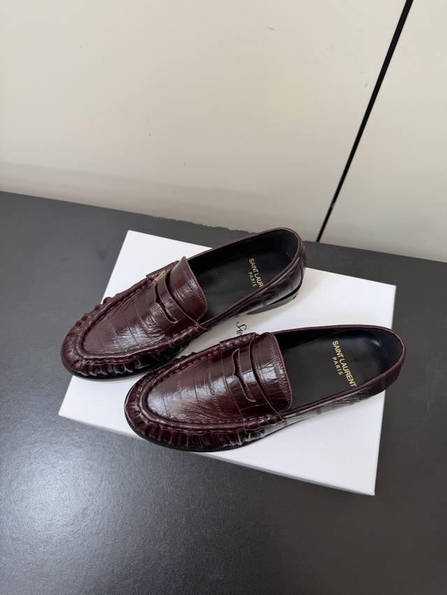 男款 Saintlaurent 25Ss秋冬复古质感乐福鞋休闲鞋 DDD 鞋型为低帮平底设计,线条流畅且贴合脚型,兼具通勤与休闲属性。使用漆皮、鳄鱼纹压花皮、反绒麂皮、豹纹马毛等多元材质,漆皮款自带光泽感,麂皮款质感柔软,豹纹马毛款则更具个性。 DDD 鞋身带有品牌标志性的金属Ysl标识,鞋头为圆润造型,鞋帮处有褶皱装饰,兼顾美观与实用性。配色丰富,包含经典黑、酒红、焦糖棕、米白等基础色,还有豹纹印花的个性款,能适配不同穿搭风格。 DDD 鞋面:牛皮 Ddd 内里:羊皮 Ddd 大底:真皮大底 Ddd 增