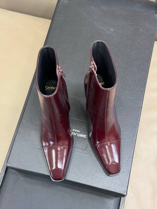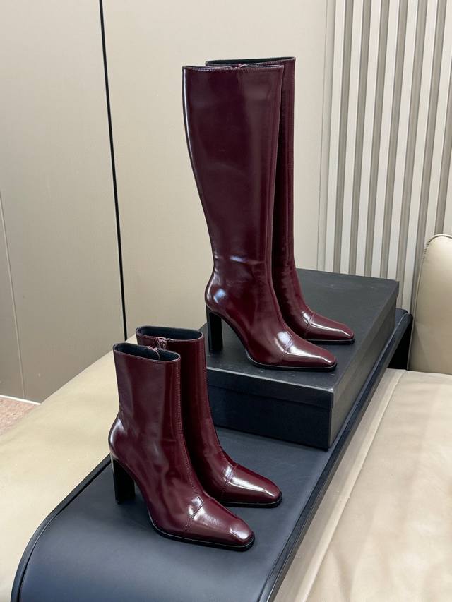 长 短 代购版 Ys 圣罗兰25年冬季新款 方头粗跟短靴.长靴子 舒适感最好的一双靴子.适配度也很高 今年新款 姐妹们可冲 鞋头视觉凌厉中率性,好爱呀 牛皮材质