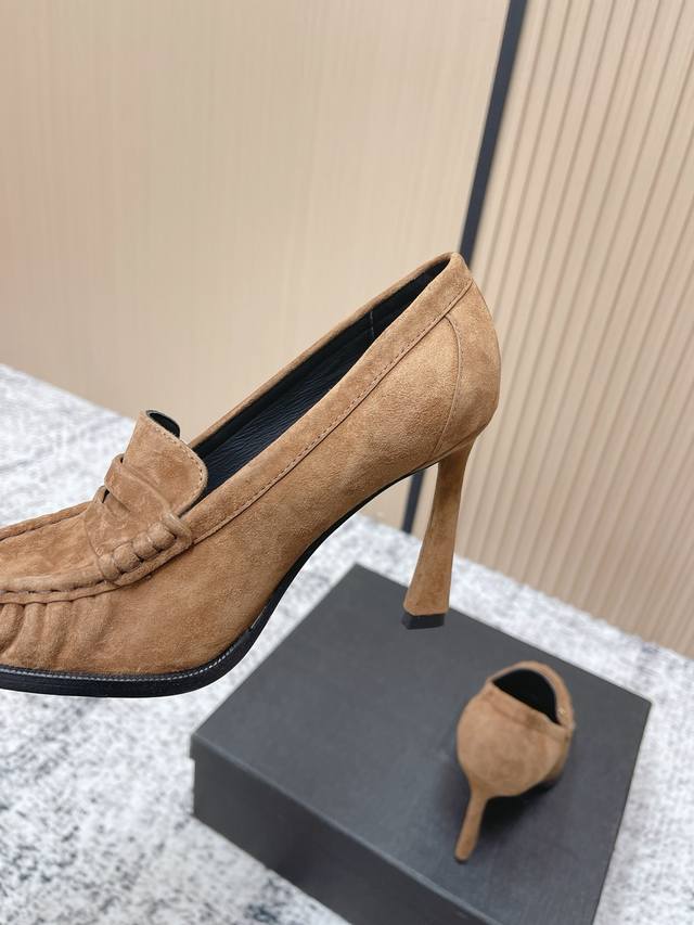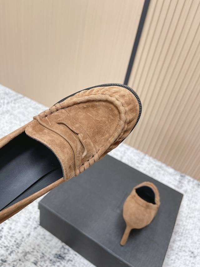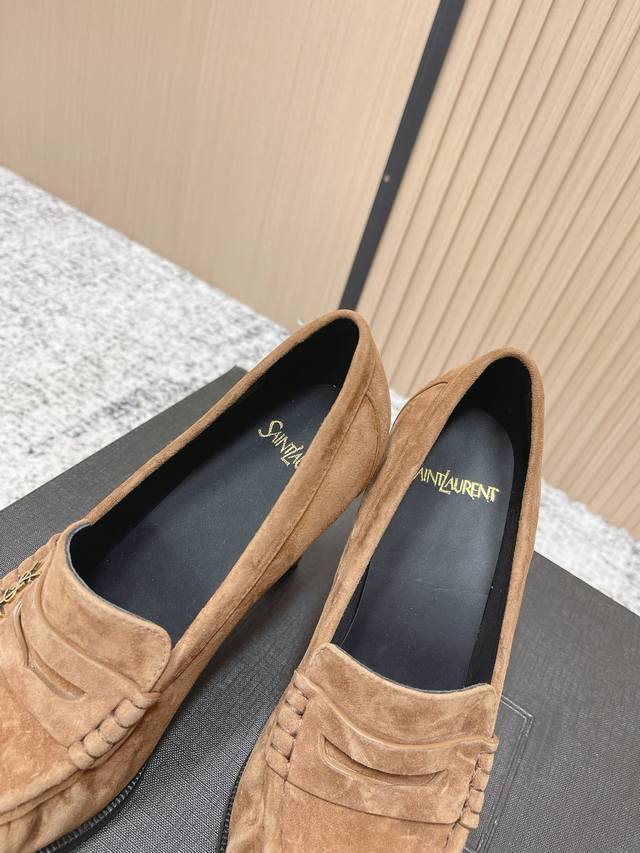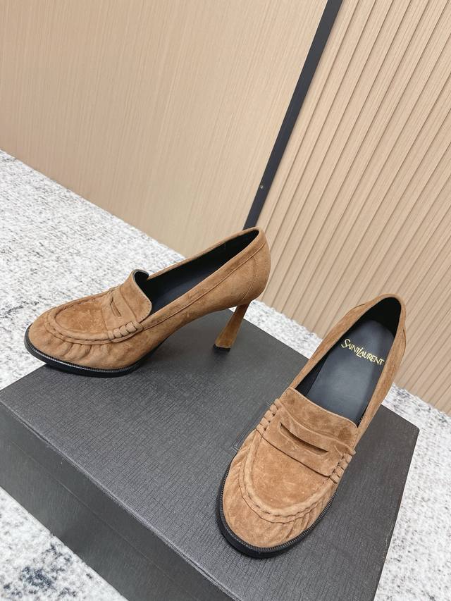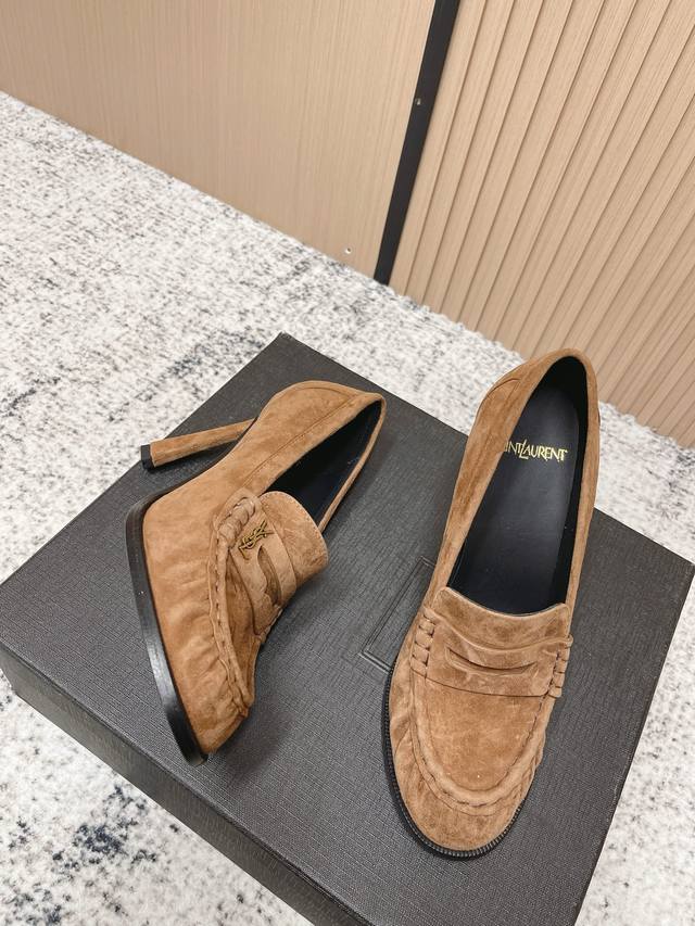 FFF 顶级品质: DDD Saint Laurent 圣罗兰Fw26 New Arrival~ DDD Ysl Le Loafer高跟乐福鞋系列 26Fw春夏新款复古质感鳗鱼纹褶皱高跟乐福鞋 穆勒鞋麂皮绒面老钱风高跟单鞋 半拖鞋一脚蹬休闲鞋 DDD 标志性褶皱鞋头+手工莫卡辛缝线,自带复古松弛感;鞋身是乐福鞋经典一脚蹬设计,搭配金属Ysl标志,简约又有辨识度。 DDD 皮革内衬+真皮大底,质感和舒适度都在线。风格适配性强,既能搭正装 西装 裙装 走精致路线,也能配休闲装,牛仔裤 卫衣,打造松弛感,属于“