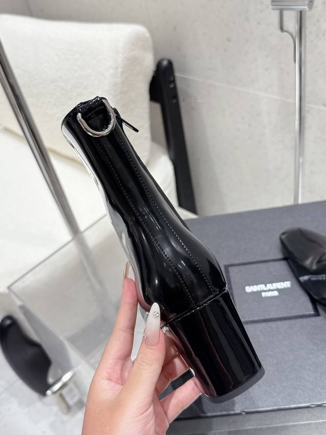 Ysl圣罗兰2025秋冬新款侧拉链粗跟短靴 裸靴