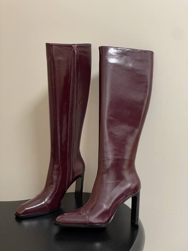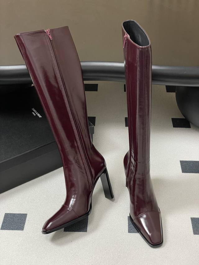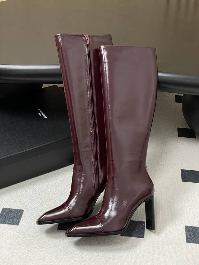 顶级品质 DDD Saint Laurent Fw25 New Arrival~ DDD Ysl圣罗兰2025秋冬新款侧拉高跟长靴粗跟亮面高靴 DDD 整个鞋非常的简约大气~小方头更加的精致时髦可以看到我们靴子侧面是按照人体腿型设计出来的弧度~上脚非常秀气好看不挑人~拉长腿型~适合各种场合搭配~秋冬穿搭必备单品! DDD 鞋面:油蜡皮 DDD 内里垫脚:羊皮 DDD 鞋底:意大利A级真皮大底 DDD 跟高:10Cm DDD 码数:35-39 40.41定做不退换 DDD