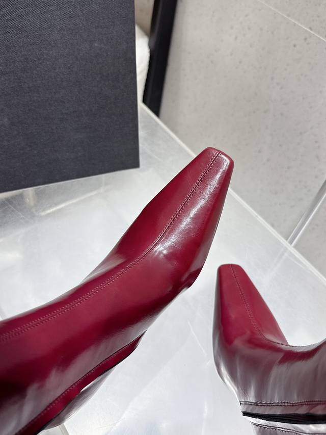 整个鞋非常的简约大气~小圆头更加的精致时髦可以看到我们靴子侧面是按照人体腿型设计出来的弧度~上脚非常秀气好看不挑人~拉长腿型~适合各种场合搭配~秋冬穿搭必备单品!